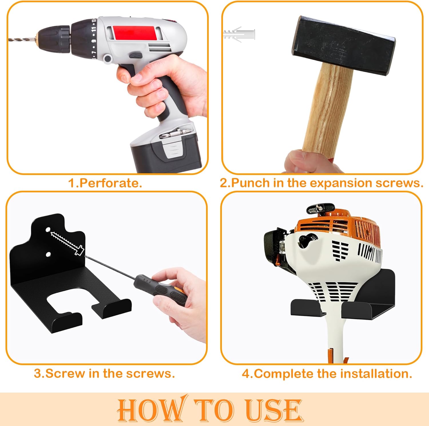 - 【Versatile & Space-Saving Garage Organizer】This wall-mounted tool rack securely holds weed whackers, grass trimmers, hoses, power tools, and more! Perfect for garages, gardens, basements, or warehouses, its multi-purpose design maximizes vertical storage, keeping your space clutter-free.