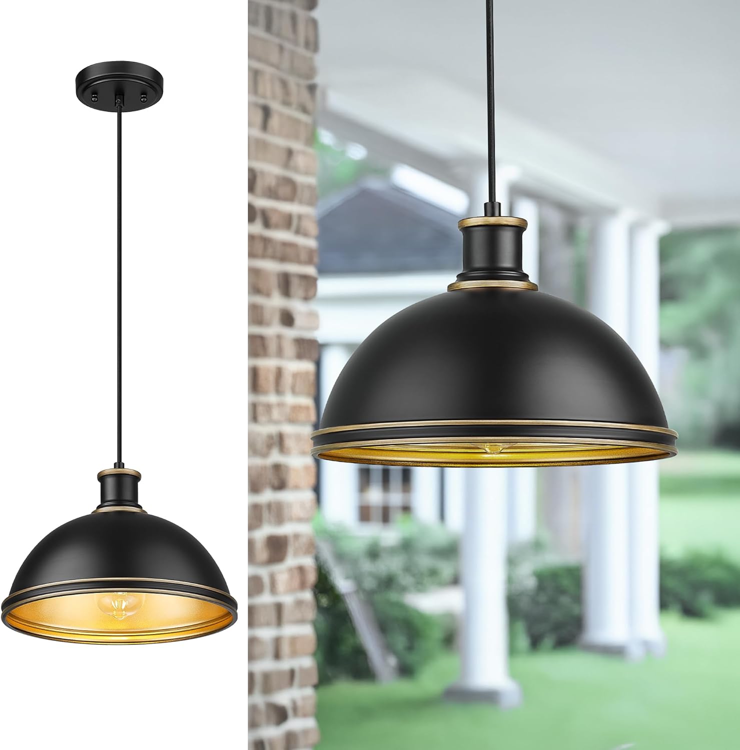 kudos Outdoor Pendant Light, 12" Large 1-Light Hanging Porch Lights, Black Outside Chandelier for Porch Gazebo Patio Entryway, KDOPL03-BK-S