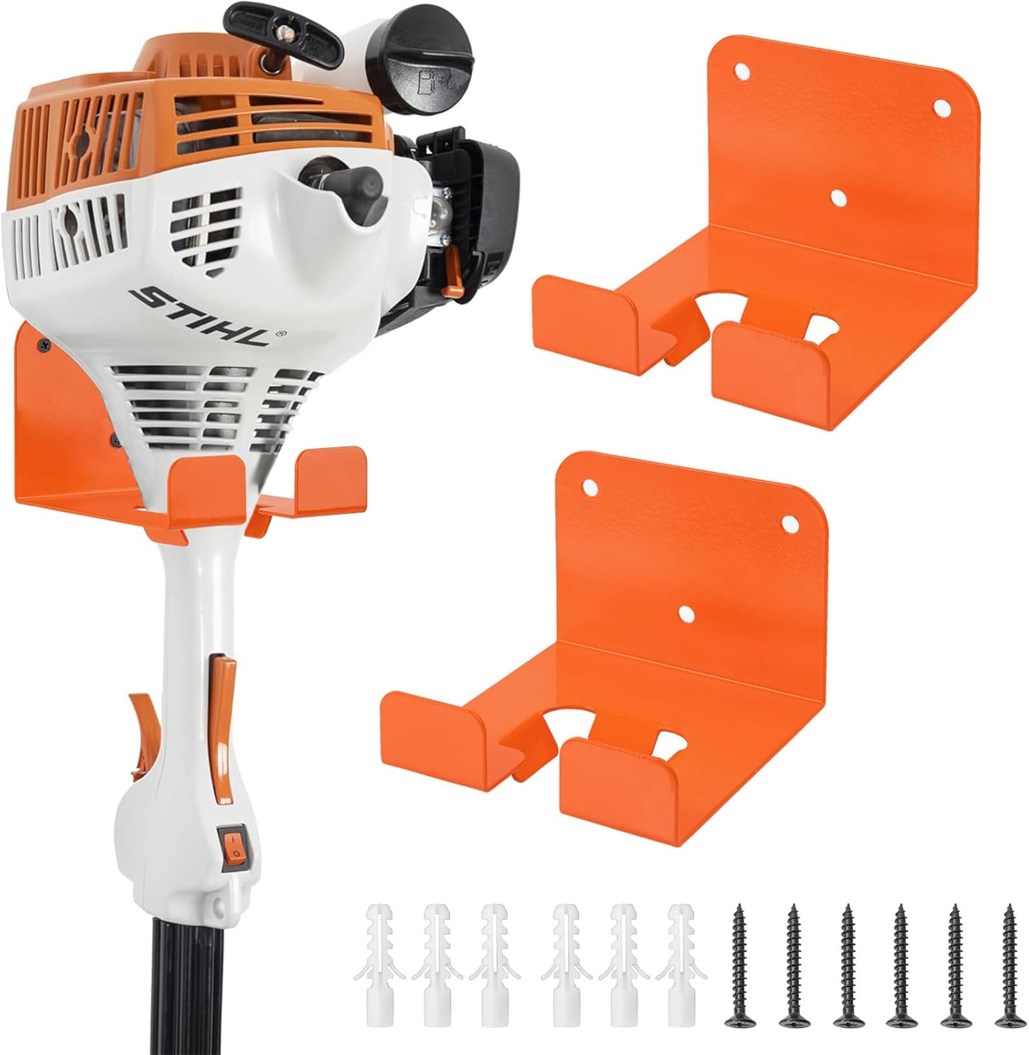 Weedeater Hanger, 2 Pack Weed Eater Hanger for Garage Wall-mounted Organizer Trimmer Rack Storage for Grass Trimmer, Hedge Trimmer, Garage Wall, Garden Tools, Black, Orange