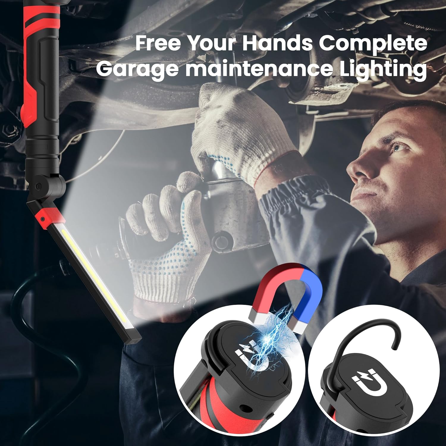 - Portable and Versatility: 180ยฐ foldable design, easy to store in a toolbox or backpack. Perfect as a mechanic light, LED work light, and bbq grill light.
