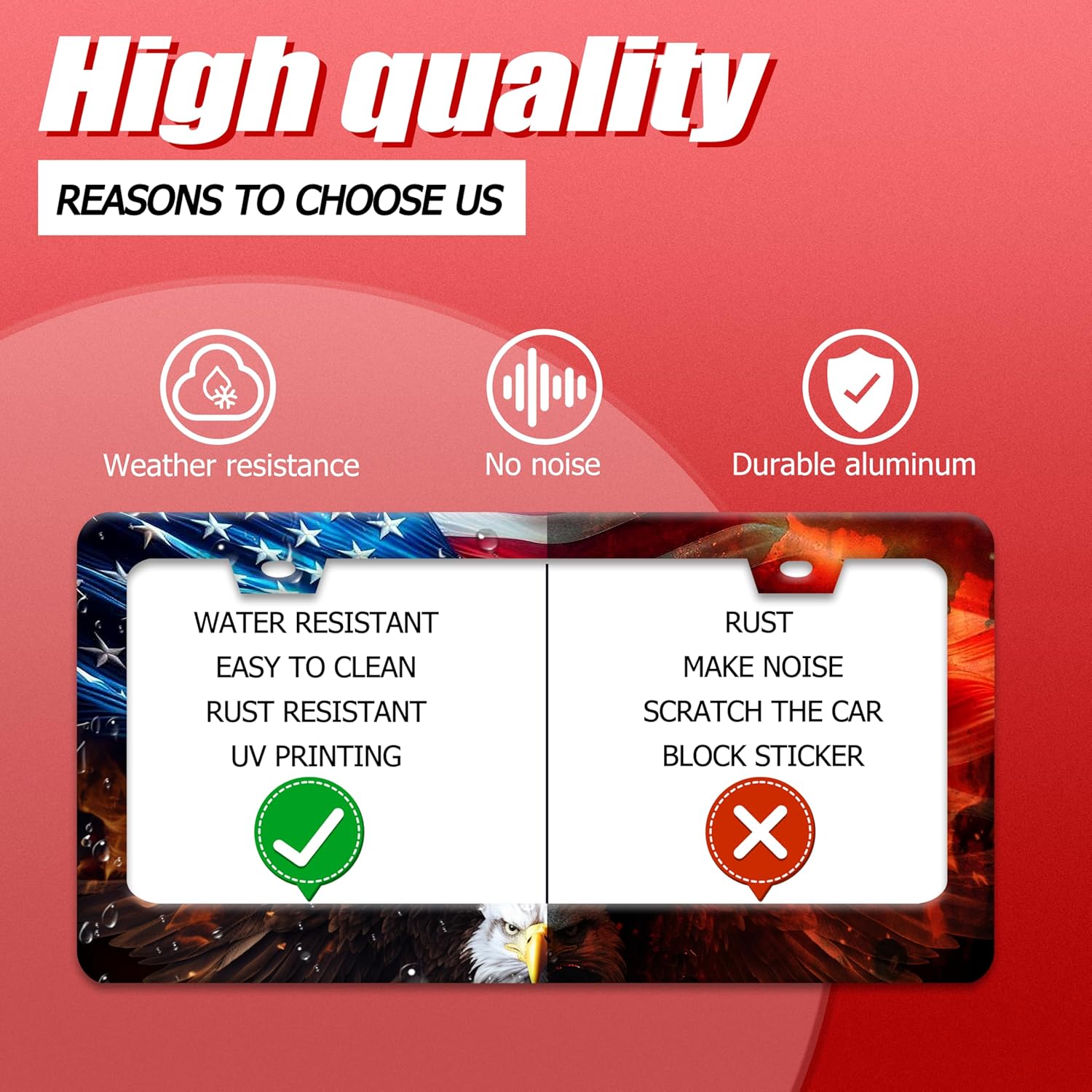 American Flag Bald Eagle License Plate Frame Patriotic License Plate Frames for Car Decorative Parts Stainless Stee License Plate for Standard Us Canada Funny License Plate Holder 12x6 Inch Unisex