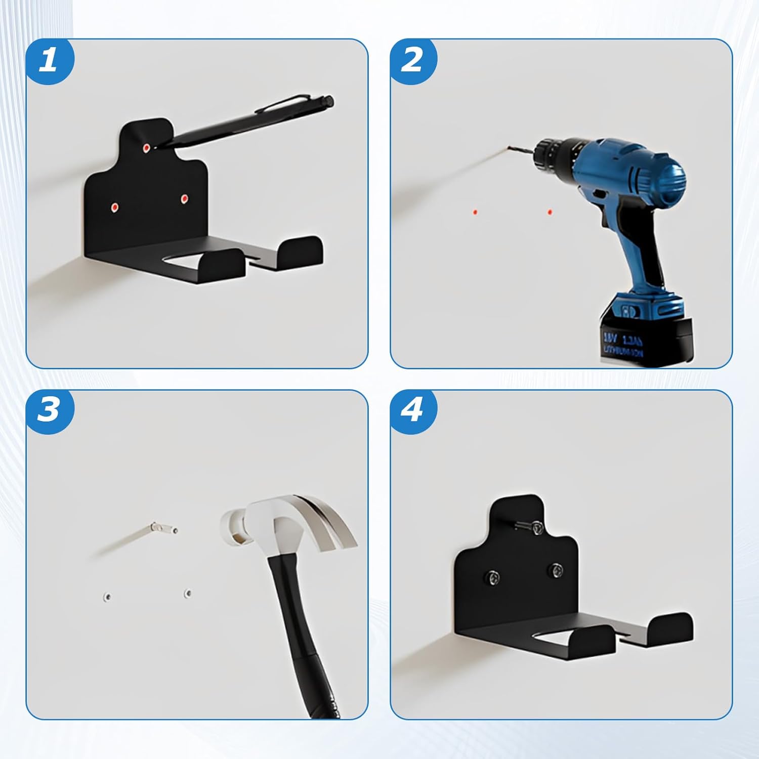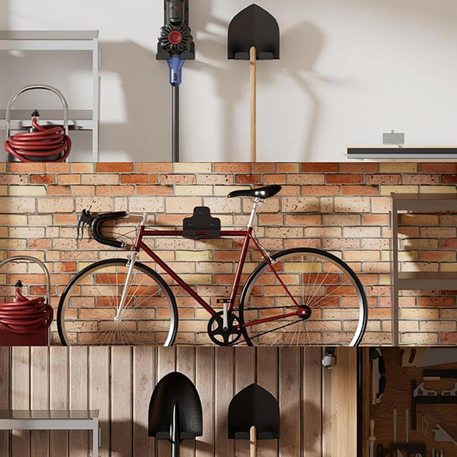 - Versatile Tool Storage Solution: Perfect for garages, sheds, or yards, this garden power tool hanger securely holds a wide range of items—including shovels, rakes, brooms, mops, drills, sports equipment, hoses, and cables—keeping your space tidy and organized