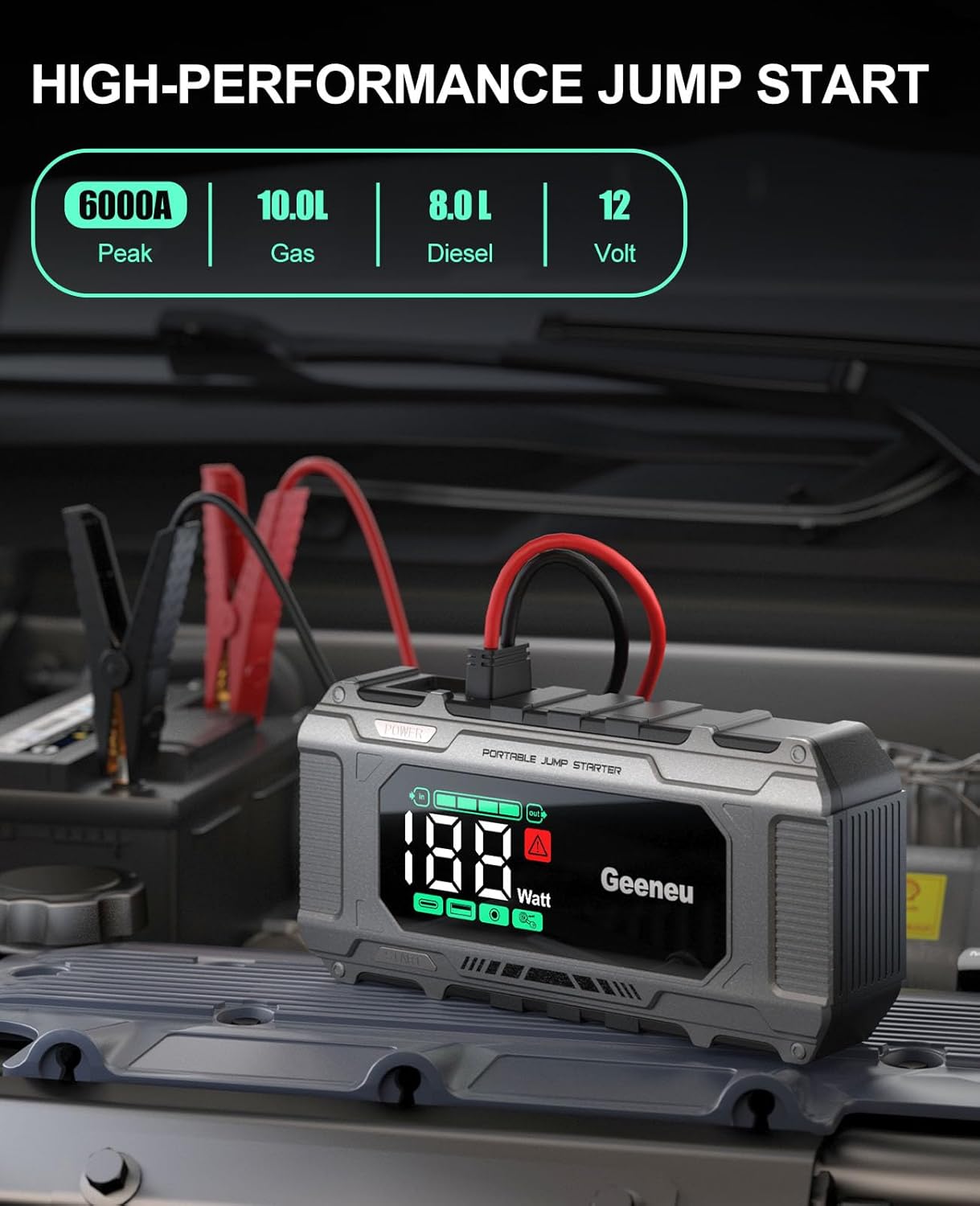 - EFFICIENT STARTUP PERFORMANCE: Delivers 6000A peak current, can wakeup dead 12V vehicle batteries up to 8.5L gas and 7L diesel in seconds. Perfect compact design for roadside emergencies, never fear a dead battery and get stuck