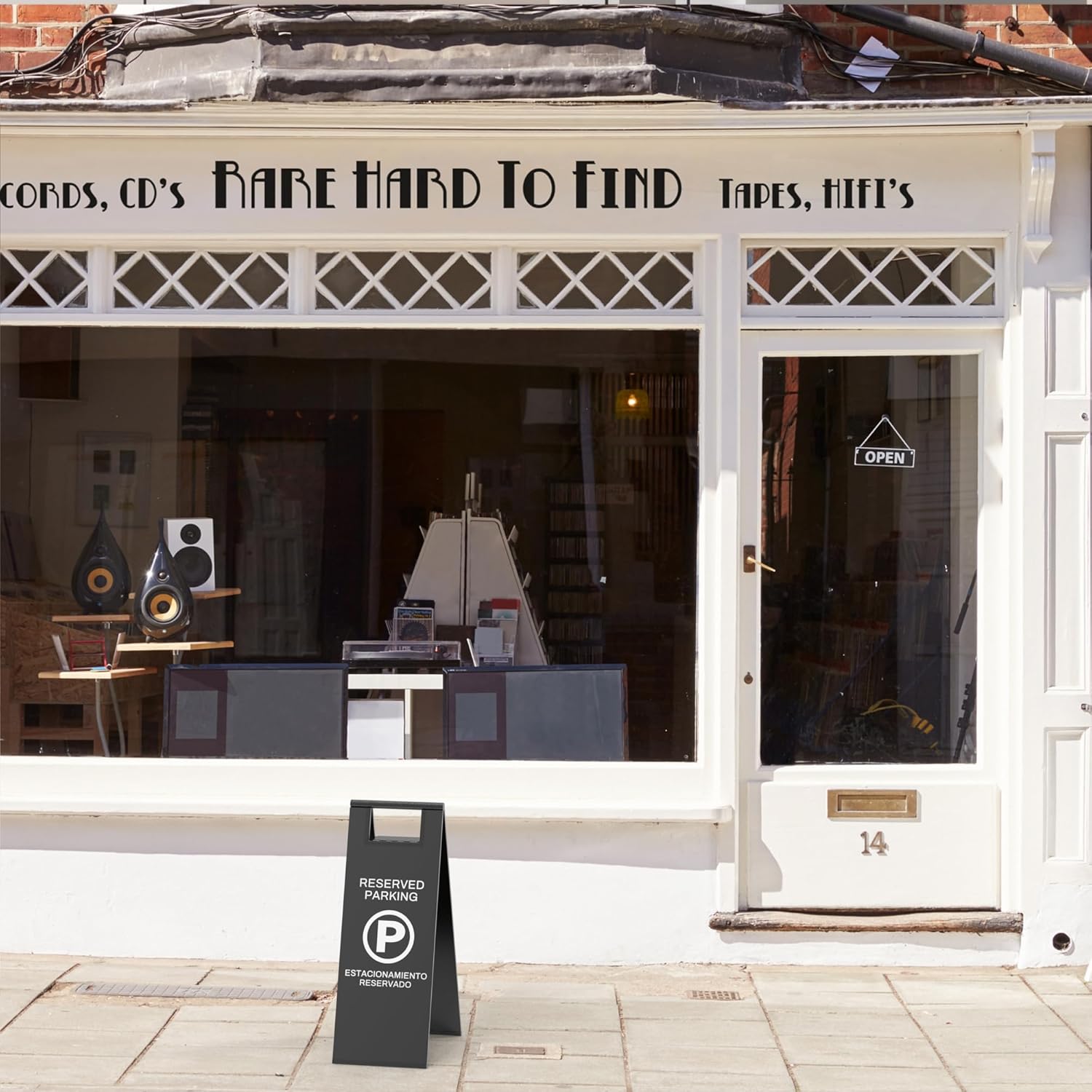 Reserved Parking Sign – Foldable Heavy Duty Plastic A-Frame with Bold “P” Symbol, Bilingual English & Spanish – 24" Tall Reserved Spot Marker for Storefront, Driveway, Garage – Black