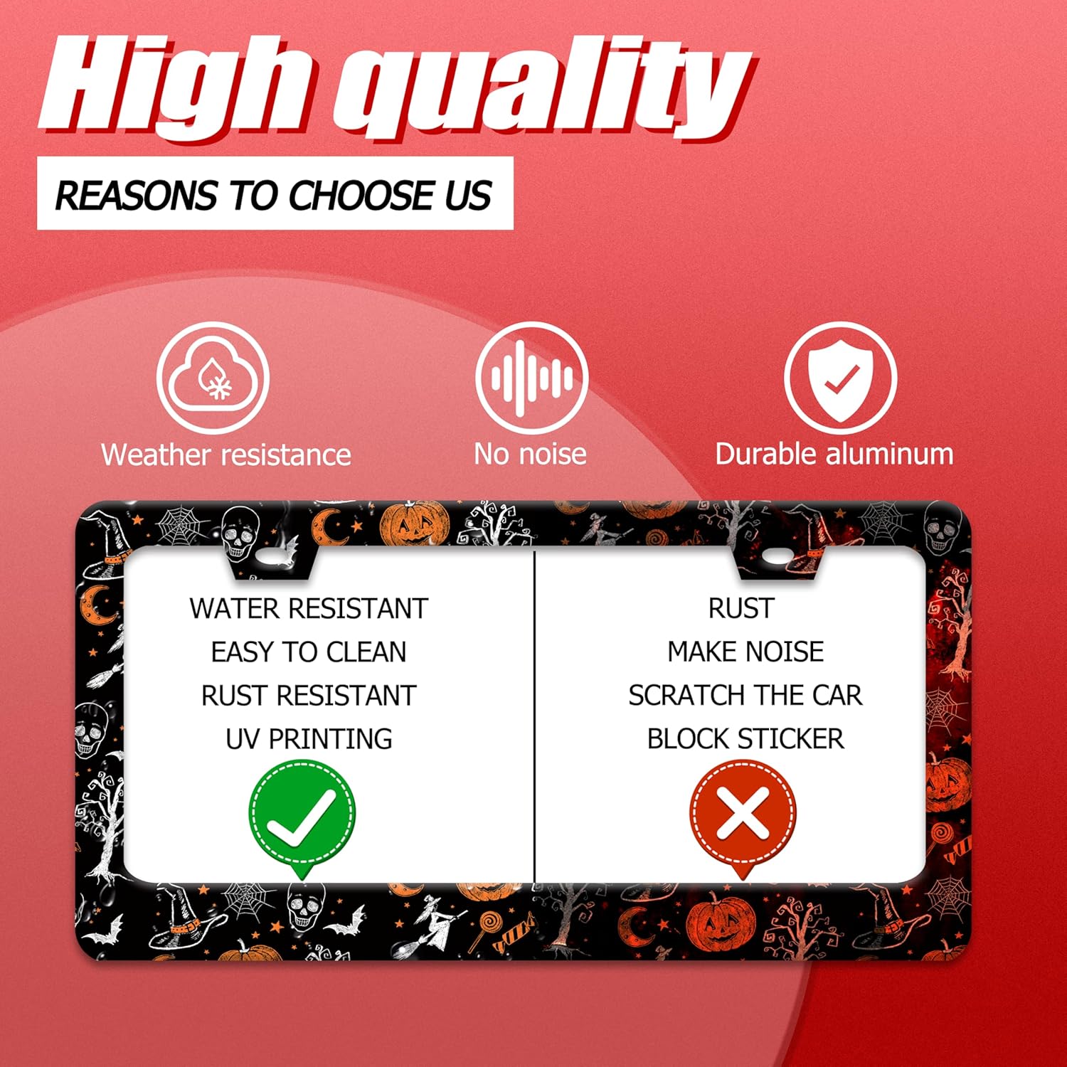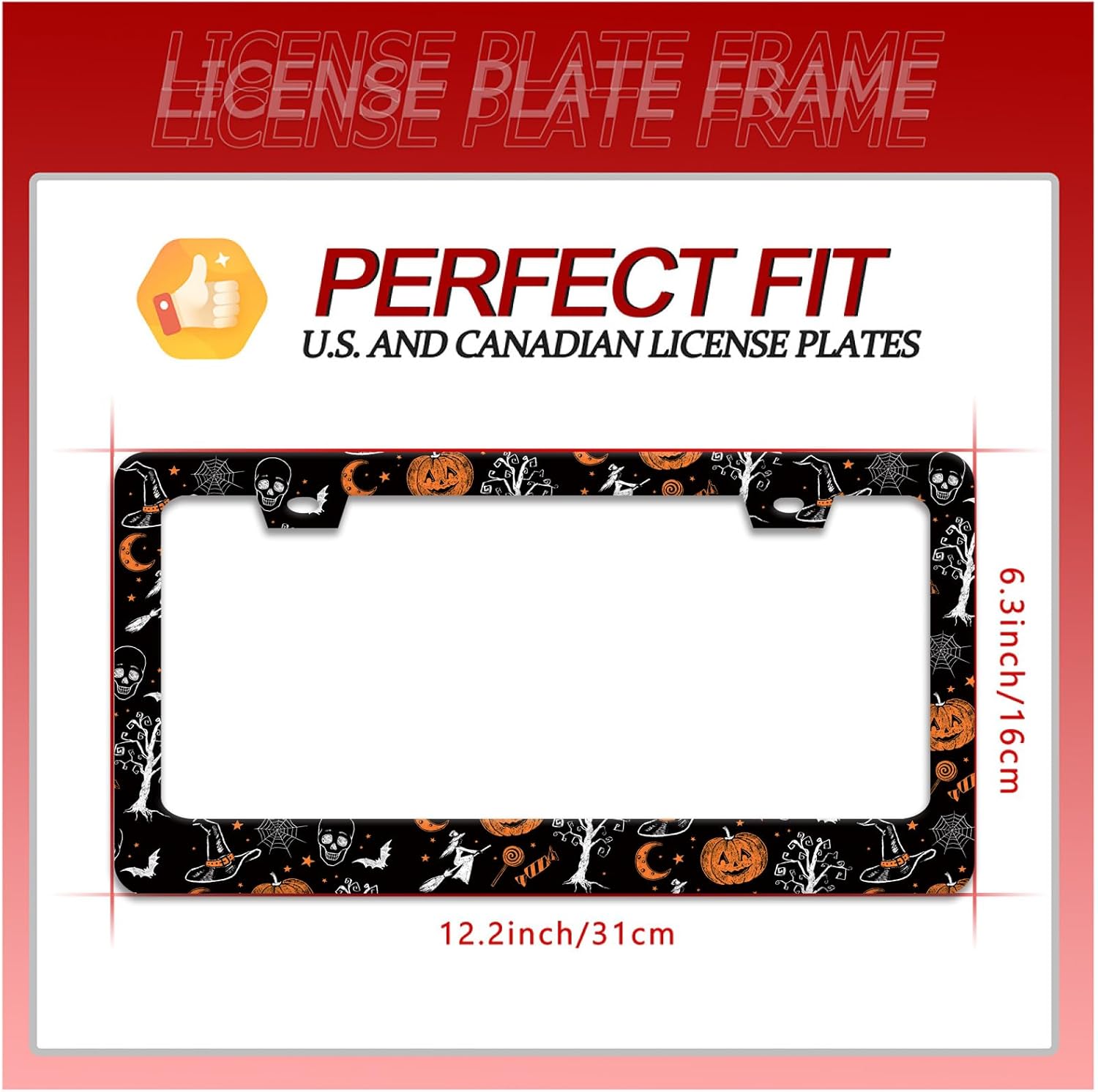 Pumpkin Witch Gothic License Plate Frame Bat Spider Web License Plate Holder Funny Personalise Car Stainless Stee Decorative Parts for Standard Us Canada Vehicles 12x6 Inch for Women Men