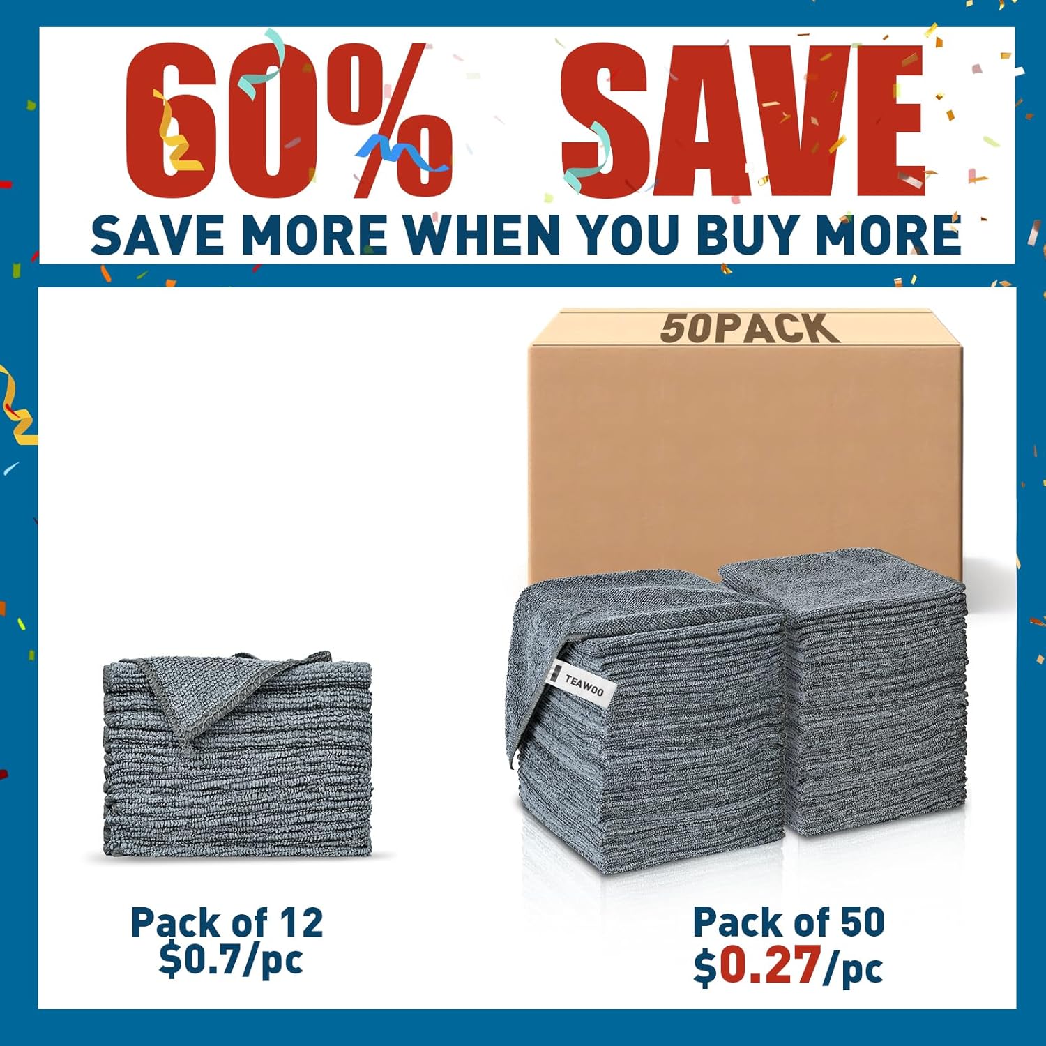 Microfiber Cleaning Cloths Bulk Pack-50 Pack, Microfiber Towels Bulk, Towels for Cars, Cleaning Rags Gray (12x12 inches)