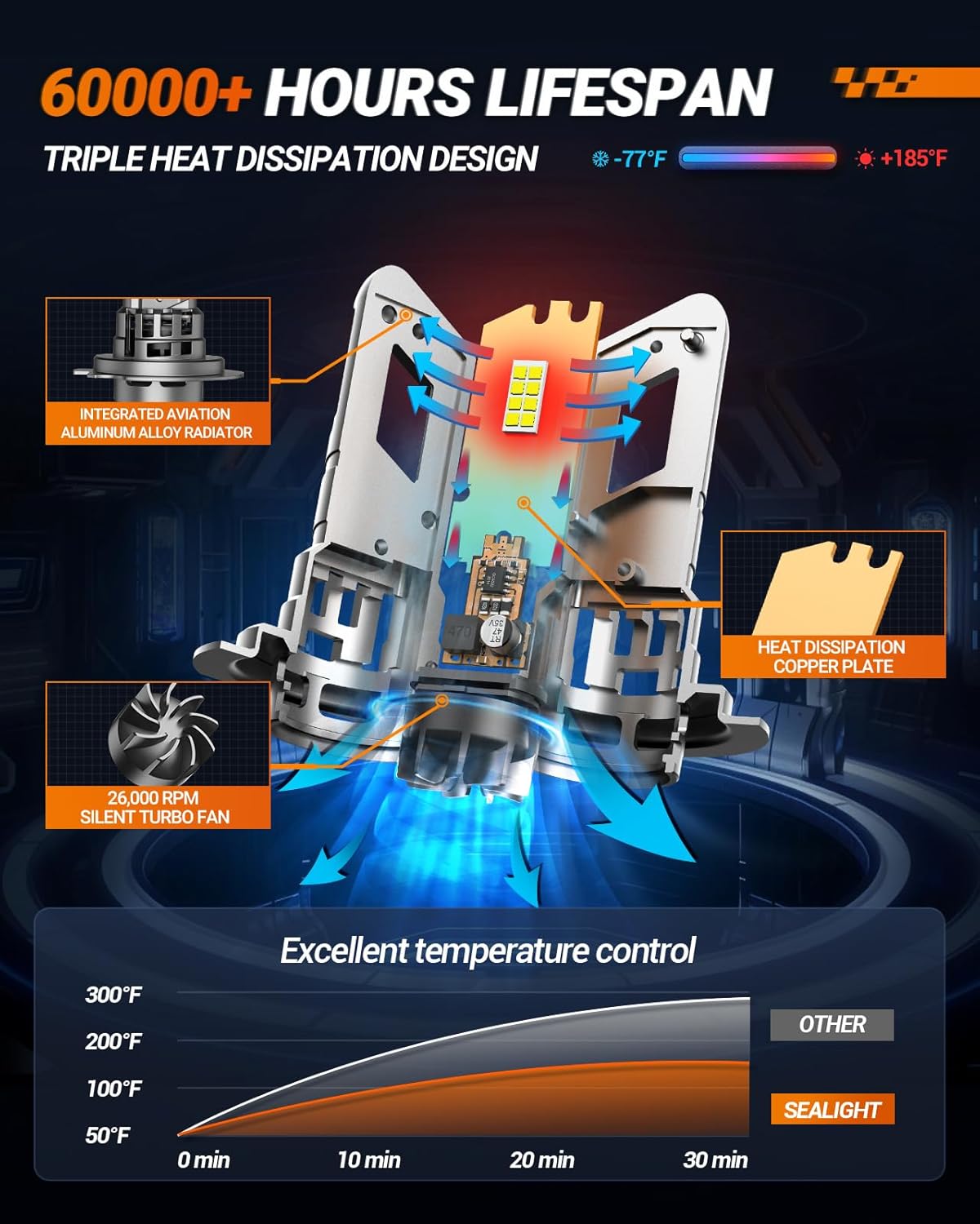 - 【99% Vehicle Compatibility】Thanks to the built-in smart IC driver and Canbus-ready design, SEALIGHT H7 bulbs and fog lights are highly compatible with 99% of vehicle systems, ensuring seamless integration