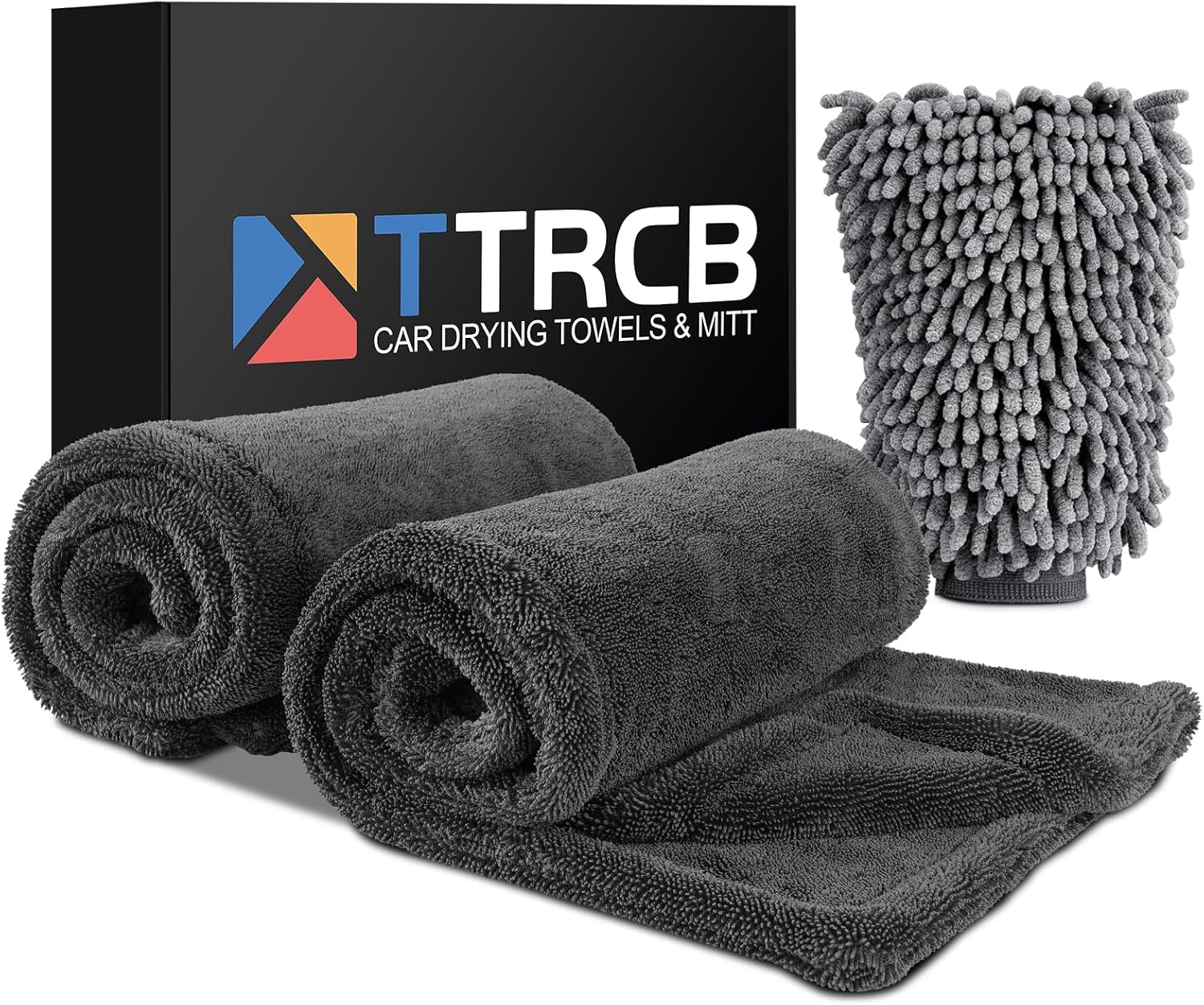 2 Pack Car Drying Towel, Microfiber Towels for Cars (36" x 24"), 1300 GSM Ultra-Absorbent, Streak Free, Premium Double Twisted-Loop Drying Towels Car Detailing with Car Wash Mitt for SUV, RV, Truck