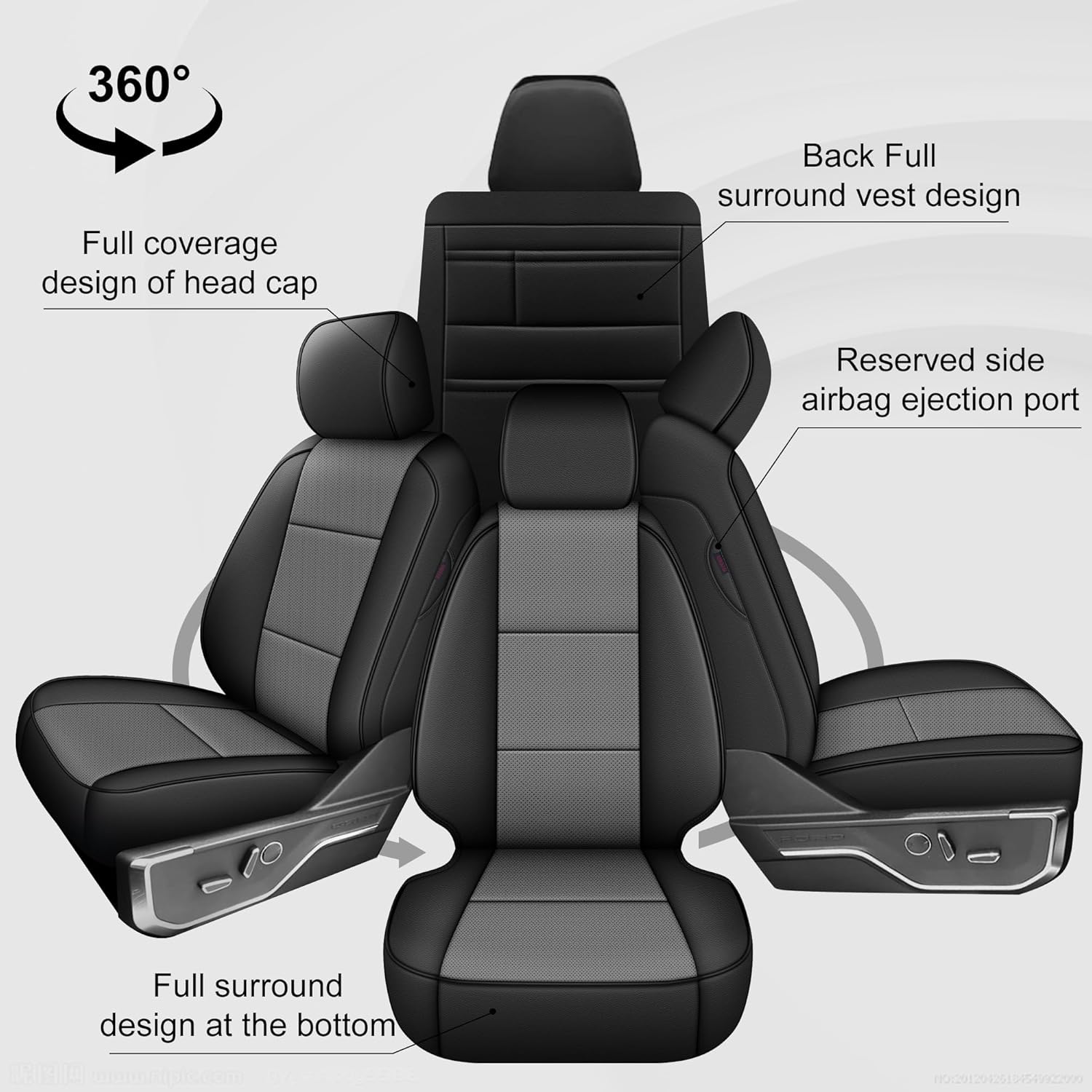AOMSAZTO Front Seat Covers for Ford F150 XL XLT: 2015-2024 SuperCrew & F250 F350 F450 2017-2024 Super Duty Crew Cab XL XLT Faux Leather Full Set Seat Cover (Black + Grey, 2PCS Front)