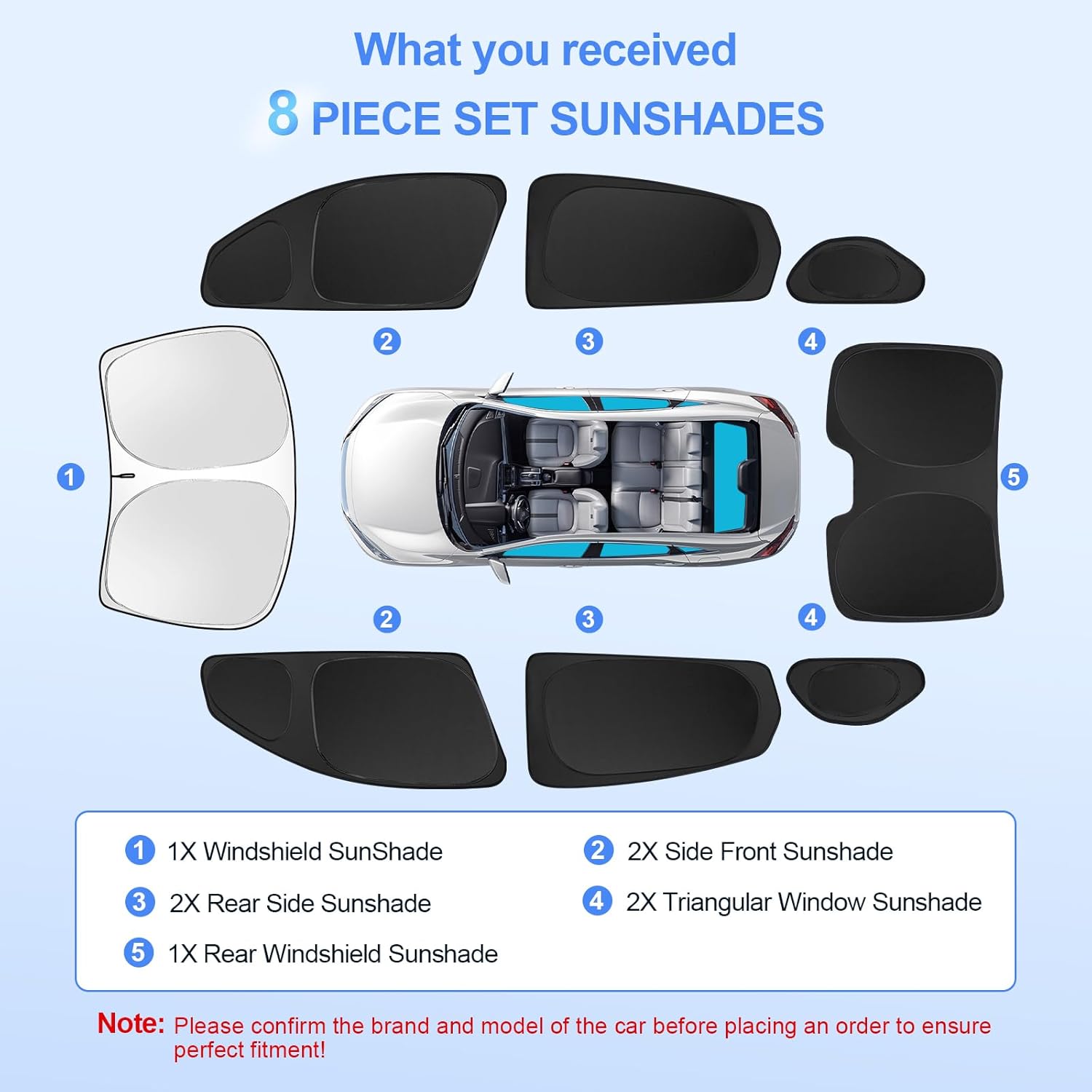 8pcs Car Window Shades for Honda Civic 2016-2021 Accessories,Windshield Side Rear Full Sunshade,Sun Visor UV Blocking, Privacy Protection and Blackout for Camping Outdoor