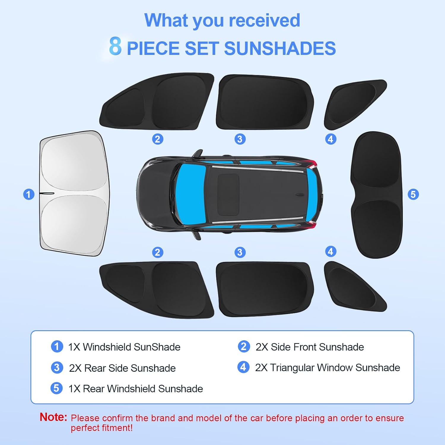 8pcs Car Window Shades for Kia Sorento 2016-2020 Accessories,Windshield Side Rear Full Sunshade,Sun Visor UV Blocking, Privacy Protection and Blackout for Camping Outdoor