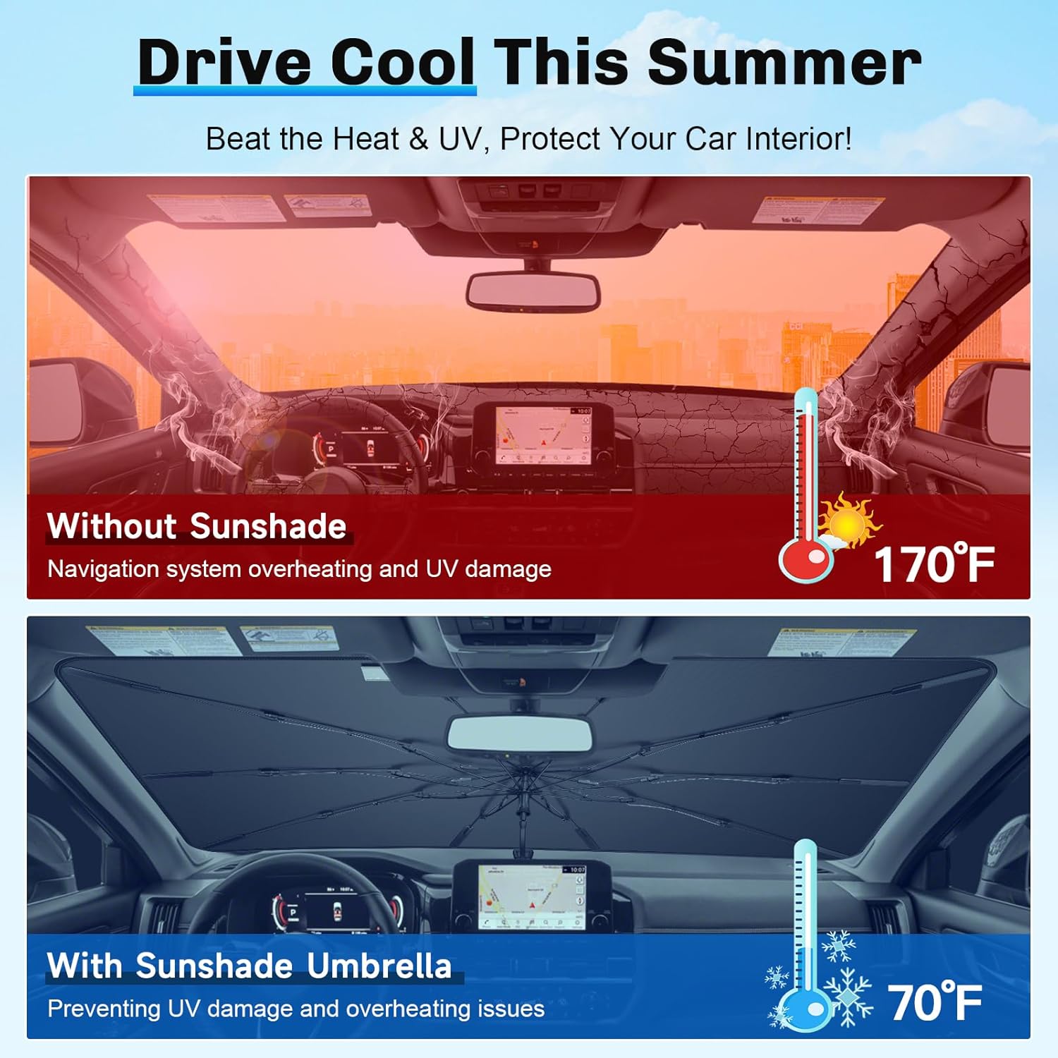 - 4. Practical & Scratch-Free: This 2025 Pathfinder Sunshade Umbrella comes with a silicone sleeve to safeguard your dashboard and a flexible TPE handle for scratch-free installation. A must-have for keeping your 2025 Pathfinder cool and UV-protected every day