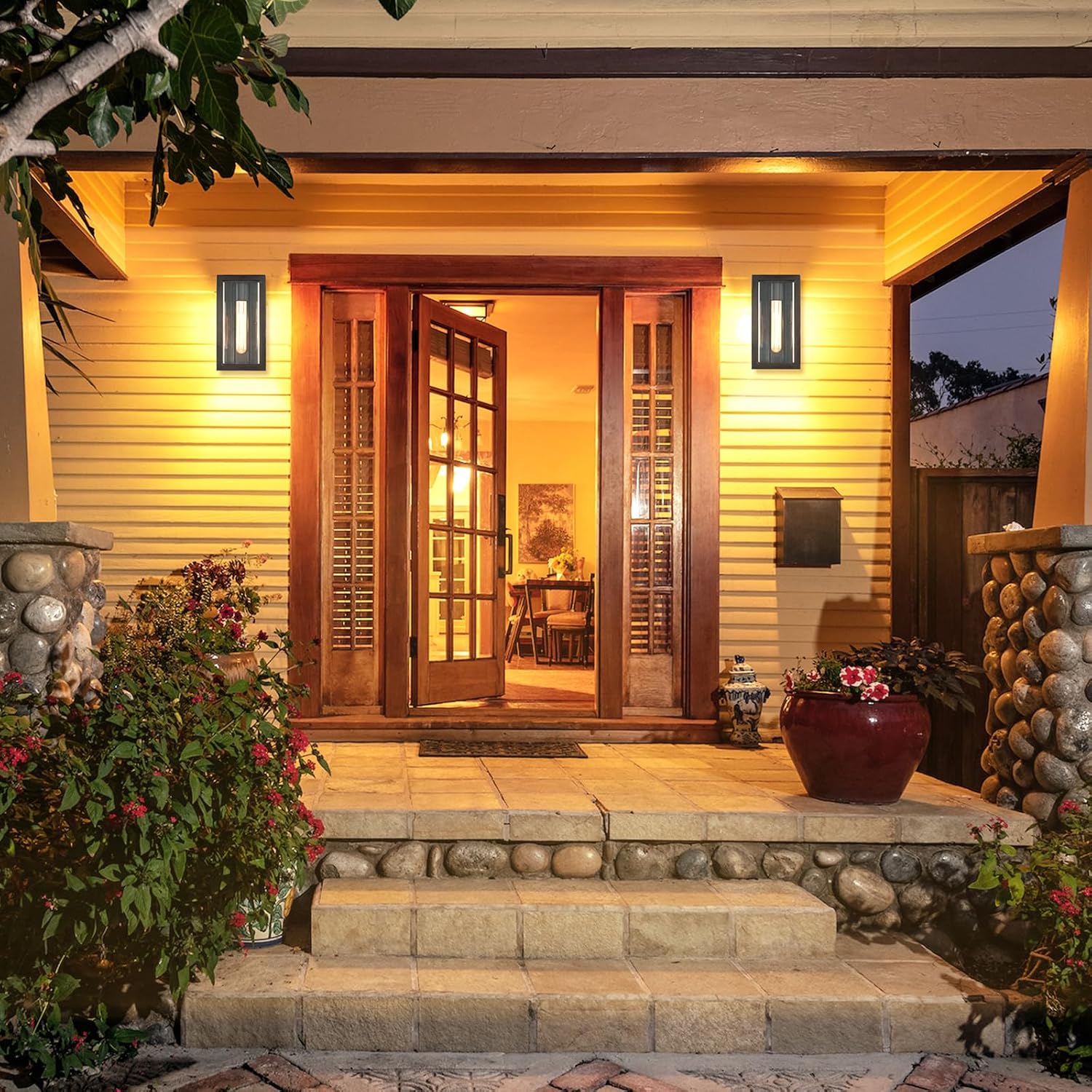 - 【Wide Application】This outdoor lights for house with Unique design can essentially go with any decor whether the lights are on or off. You can install them in garage, porch, patio, front door, hallway, entryway, corridor, backyard and any other indoor or outdoor places.