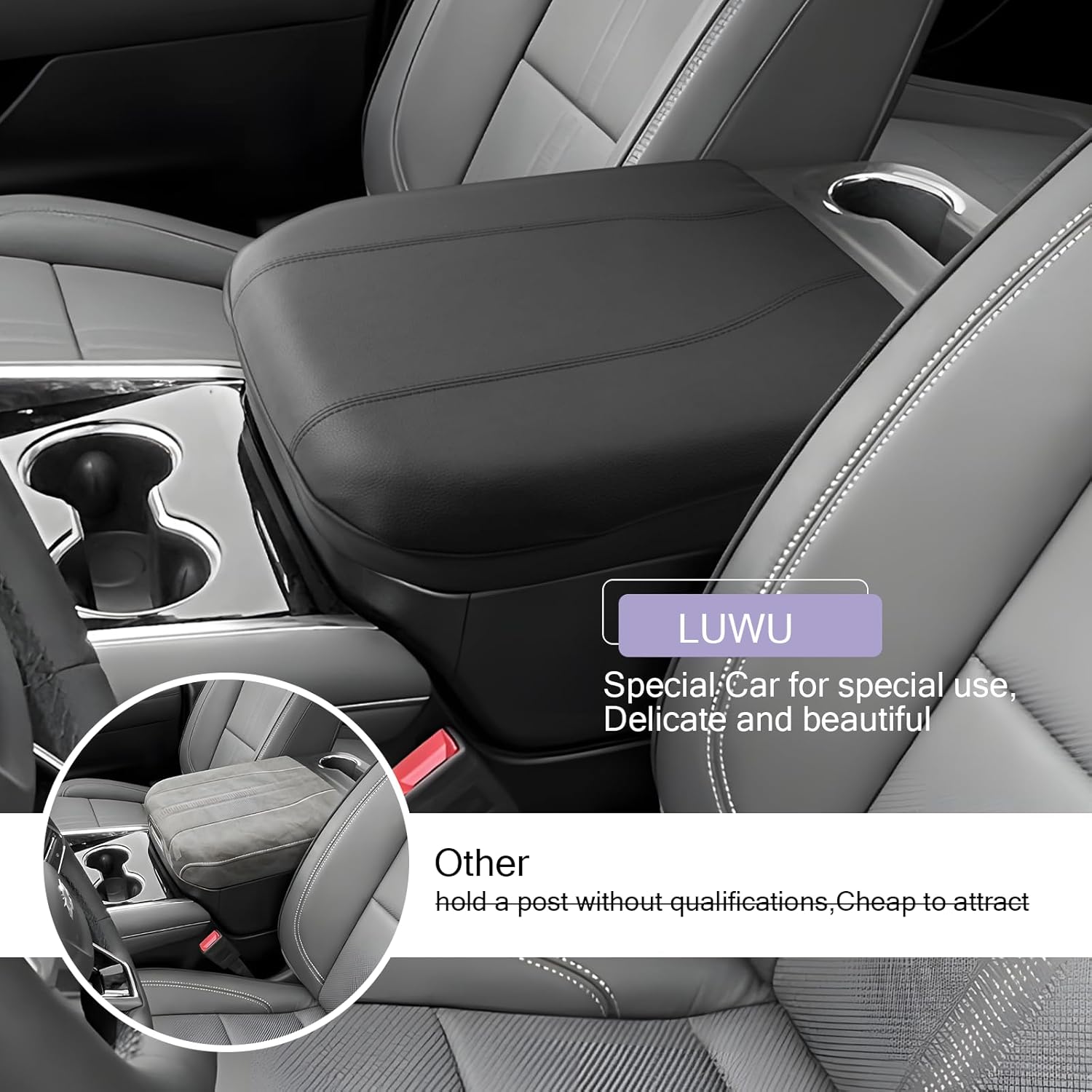 LUWU 2025 Suburban Tahoe Center Console Cover Compatible with 2025 Chevrolet Suburban Tahoe Accessories 2025 Chevy Suburban Tahoe Armrest Cover Armrest Console Cover (Thin Black)