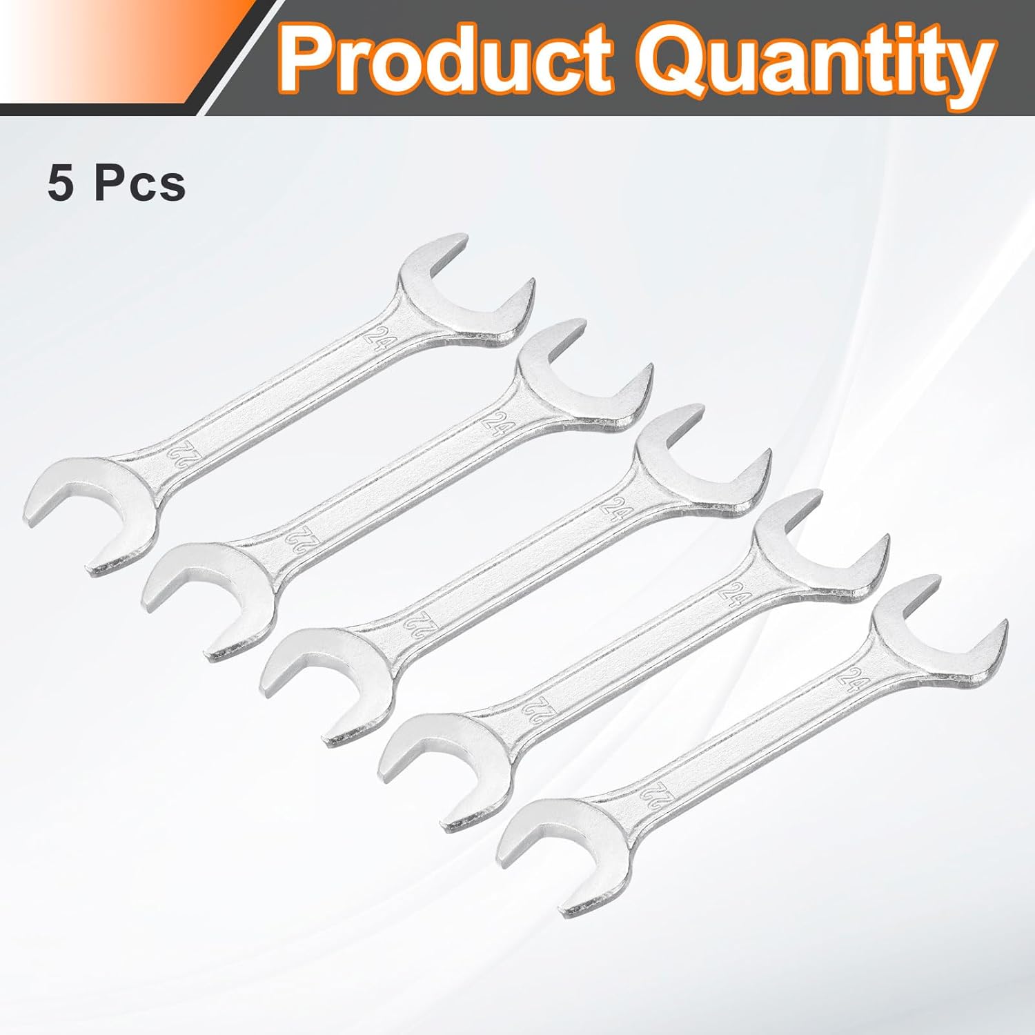 HARFINGTON 5pcs Double Open End Wrench 22mm x 24mm Metric 15 Degree Offset Angle Small Flat Head Wrench Galvanizing Open Ended Spanner for Automotive Repair Furniture Assembly