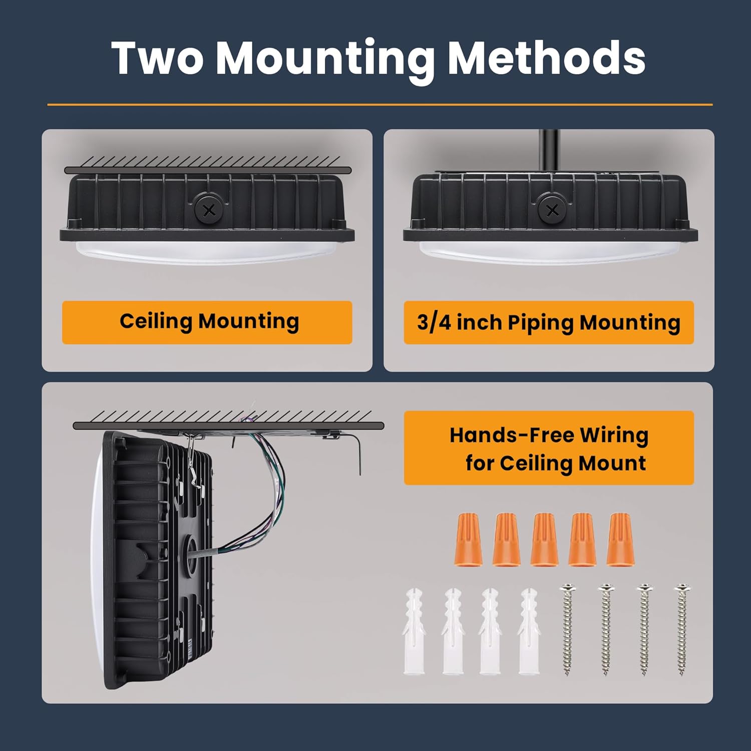 - Energy Efficiency and Brightness Control: Enjoy LED Canopy Ceiling Light benefits of 0-10V dimmability & selectable wattage & 5000K, providing precise control over brightness while maximizing energy efficiency.