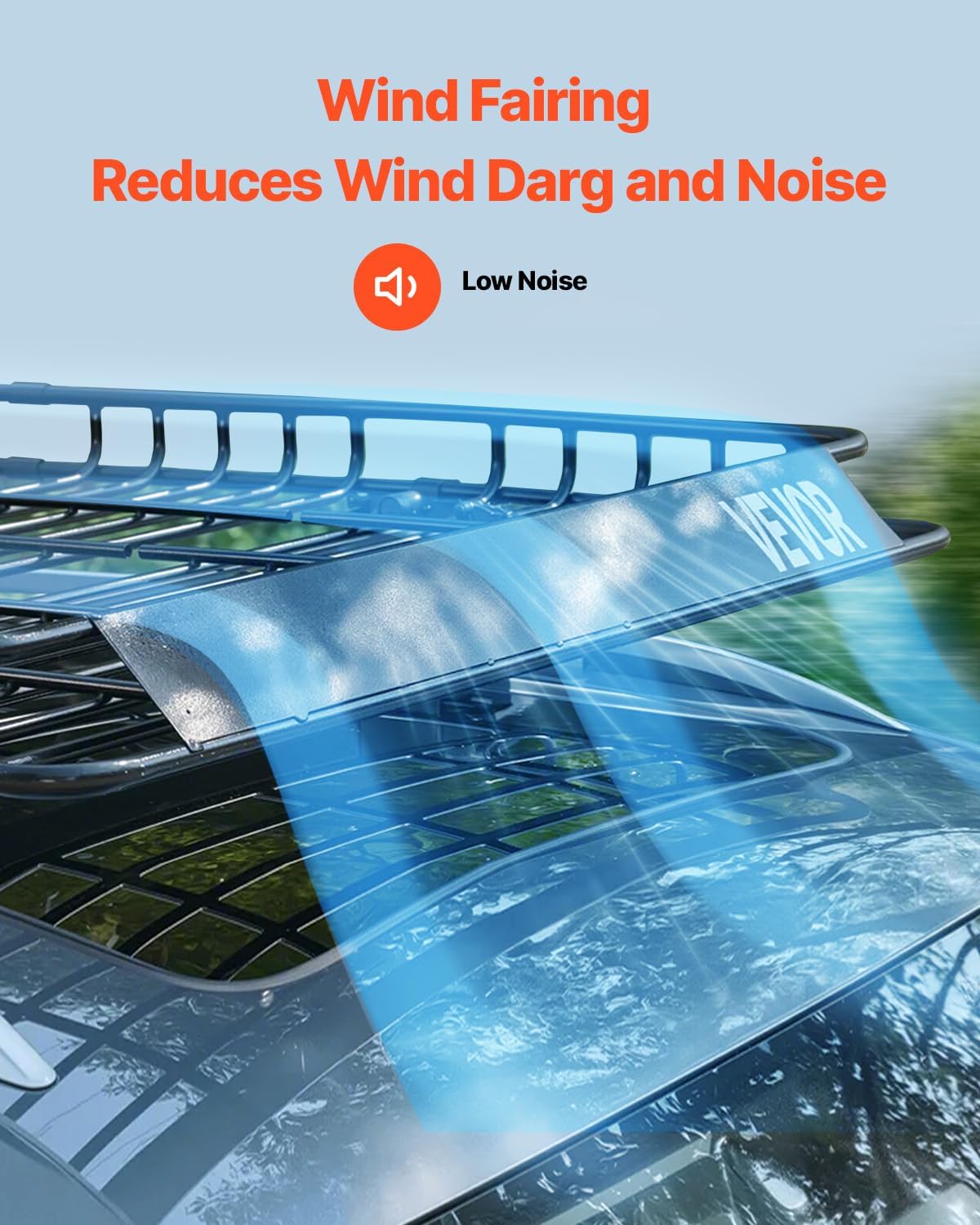 - Reduce Wind Noise & Drag: The 4.1-inch high fence features a slanted front panel that smooths airflow, reducing wind noise and drag. This car top luggage holder keeps your cargo from wind damage