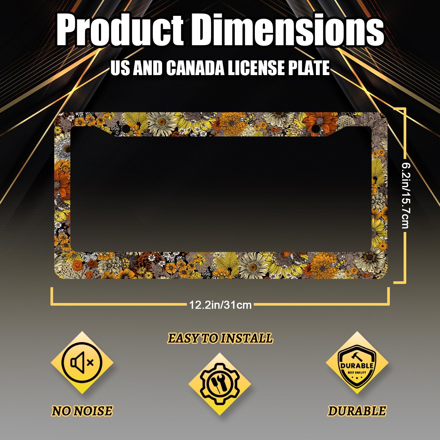 Vintage Sunflowers License Plate Frame Flowers License Plate Holder Stainless Steel Funny Colorful Car Accessories Decoration 6.3" X 12.3" With2 Holes Screws
