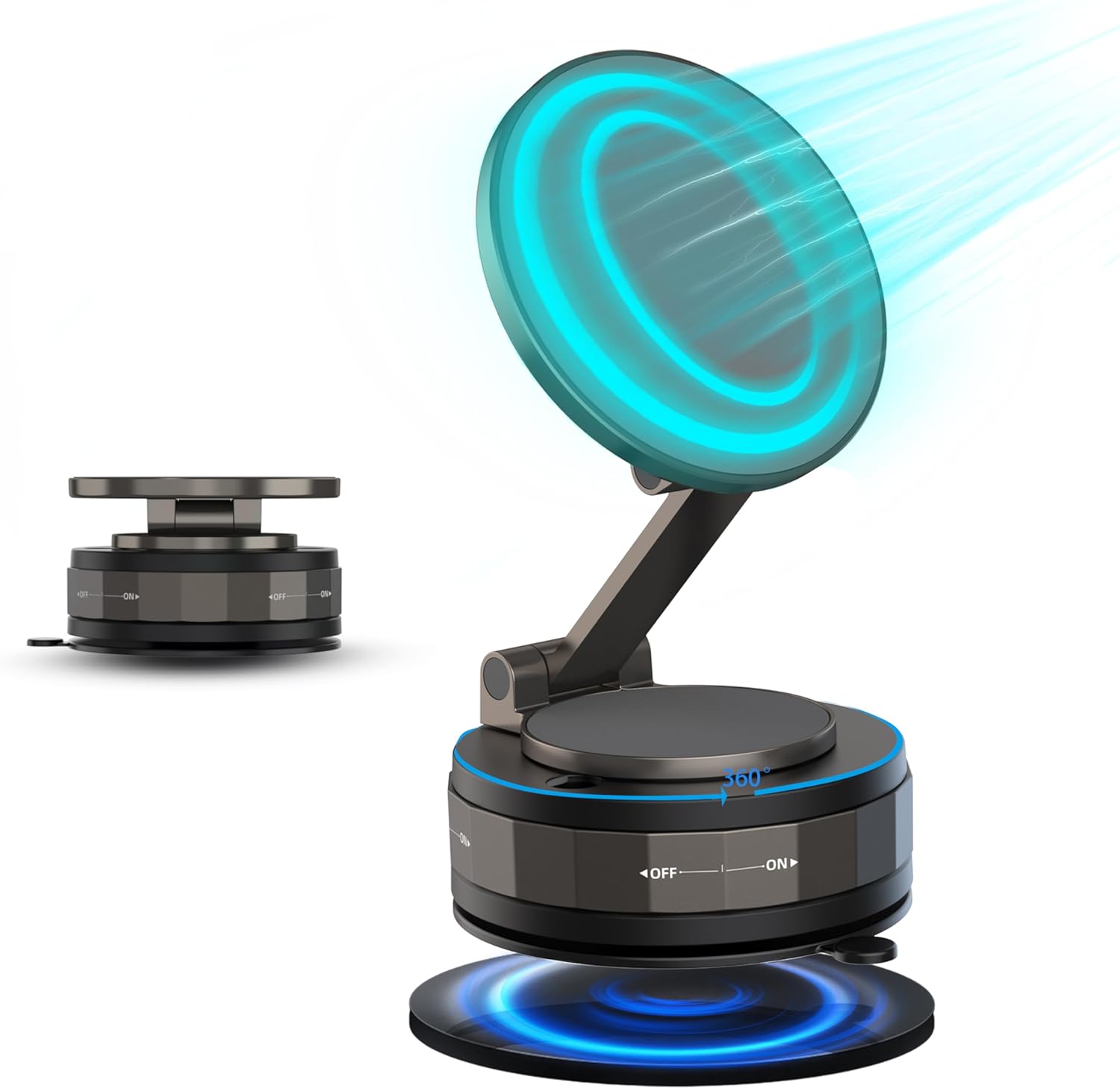 Upgraded Vacuum Magnetic Suction Phone Holder, Foldable 360° Mag Safe Car Mount, Fits i Phone 16/15/14 & Android | Portable for Car/Gym/Bathroom Mirror