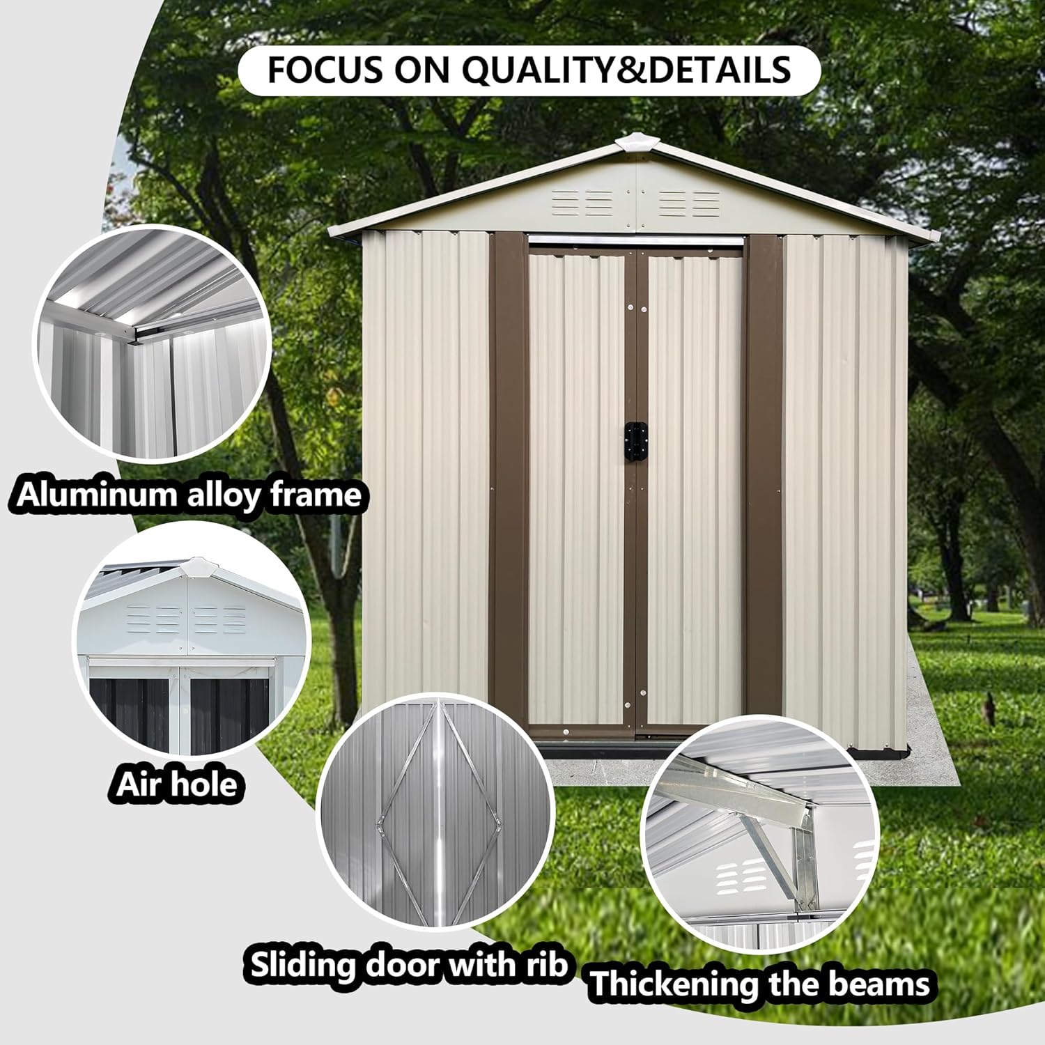 - š”šš„š„-š°šššš”šš« šššØš«šš š šš”šš: Our metal shed 5x3 features smooth, lockable sliding doors with handles for easy opening and closing. It serves not only as a safe space for storing garden tools but also as a warm pet house. The sloped roof of the storage building effectively prevents leaks and snow accumulation, while the four integrated punched vents improve airflow, helping to keep your items dry