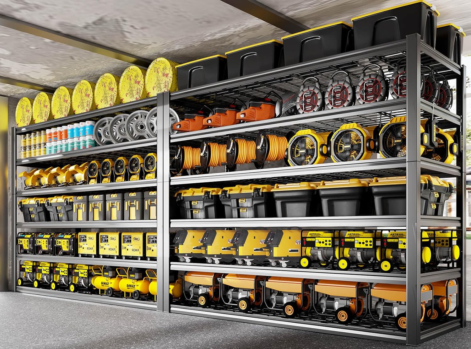 - 【Adjustable Heavy Duty Metal Shelves to Meet Different Needs】The height of each tier can be adjusted not only by moving the crossbar to meet the needs of different heights, but also the shelves can be assembled or disassembled into a variety of different metal shelves. The 84-inch tall 3000 lb. load-bearing garage shelves are not only strong, but they also give you more storage space.