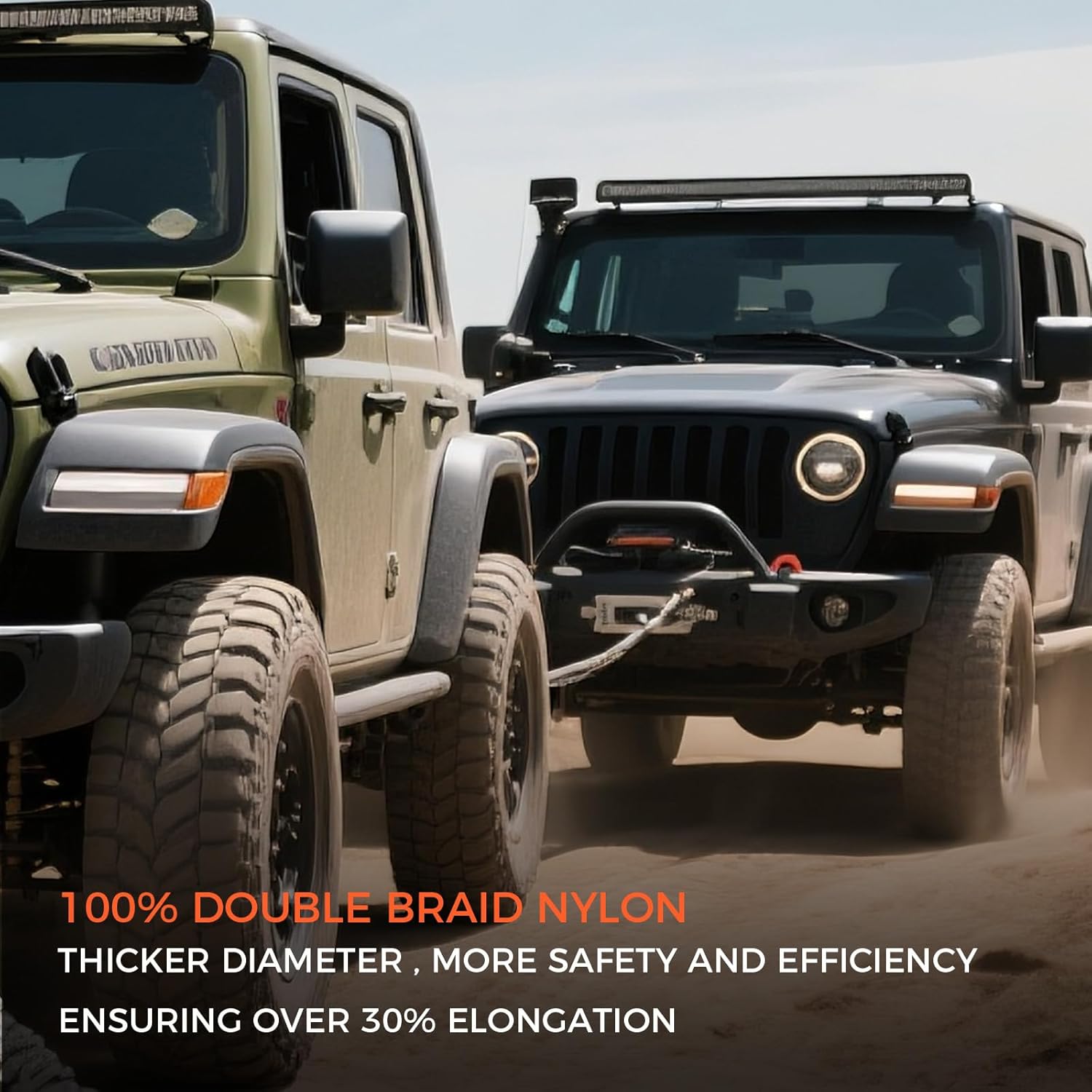 - PREMIUM PERFORMANCE: Rescue Rope is made of 100% nylon with a double braided construction for superior resilience and durability. With an extra working overload limit of 16,000 LBS, you don't have to worry about overloading your vehicle; and with up to 30% elasticity, it's the go-to choice for towing back in mud, sand, and snow, providing an effective, shock-free tow that protects your vehicle!