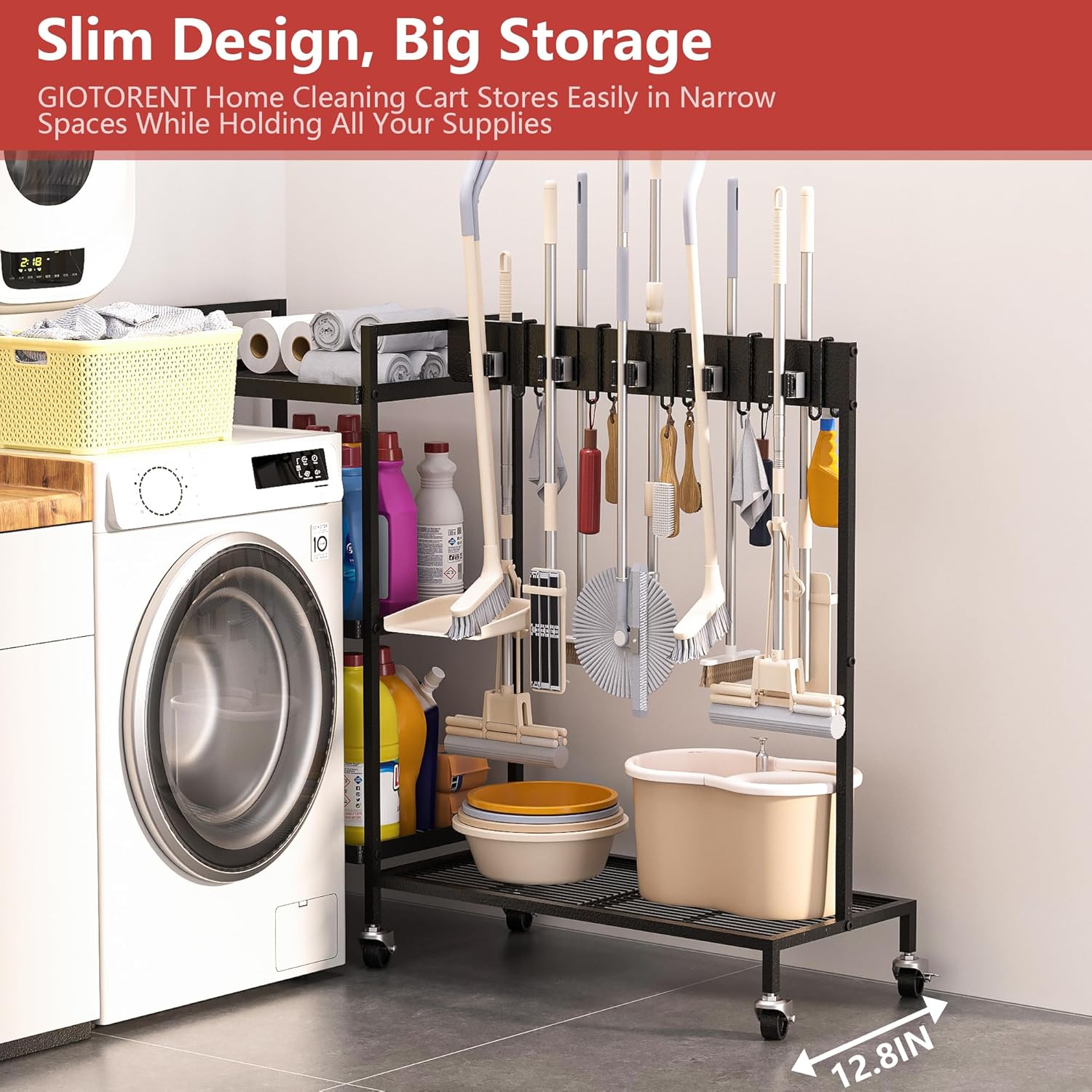 - đ ăSpace-Saving Design: Fits Tight Spots, Holds MoreăMaximize small spaces (42.9"x12.8"x32.3")! Tucks perfectly into corners, closets, or between appliances. Holds more than bulkier carts â ideal for homes & on-the-go professionals.