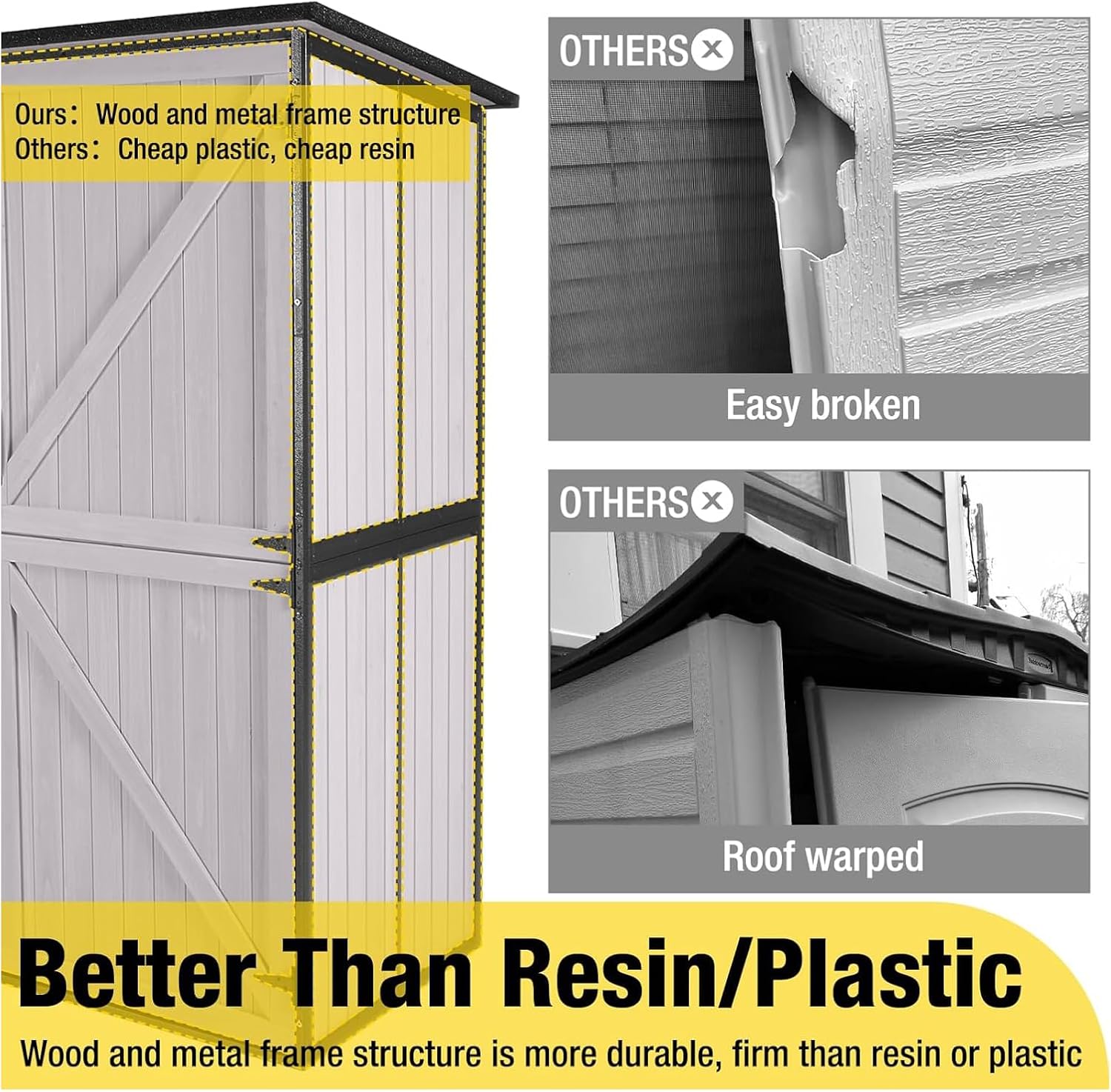 - All-Metal Frame for Superior Strength: This outdoor storage shed features a fully metal-framed panel design, offering unmatched durability and stability compared to plastic or resin storage sheds