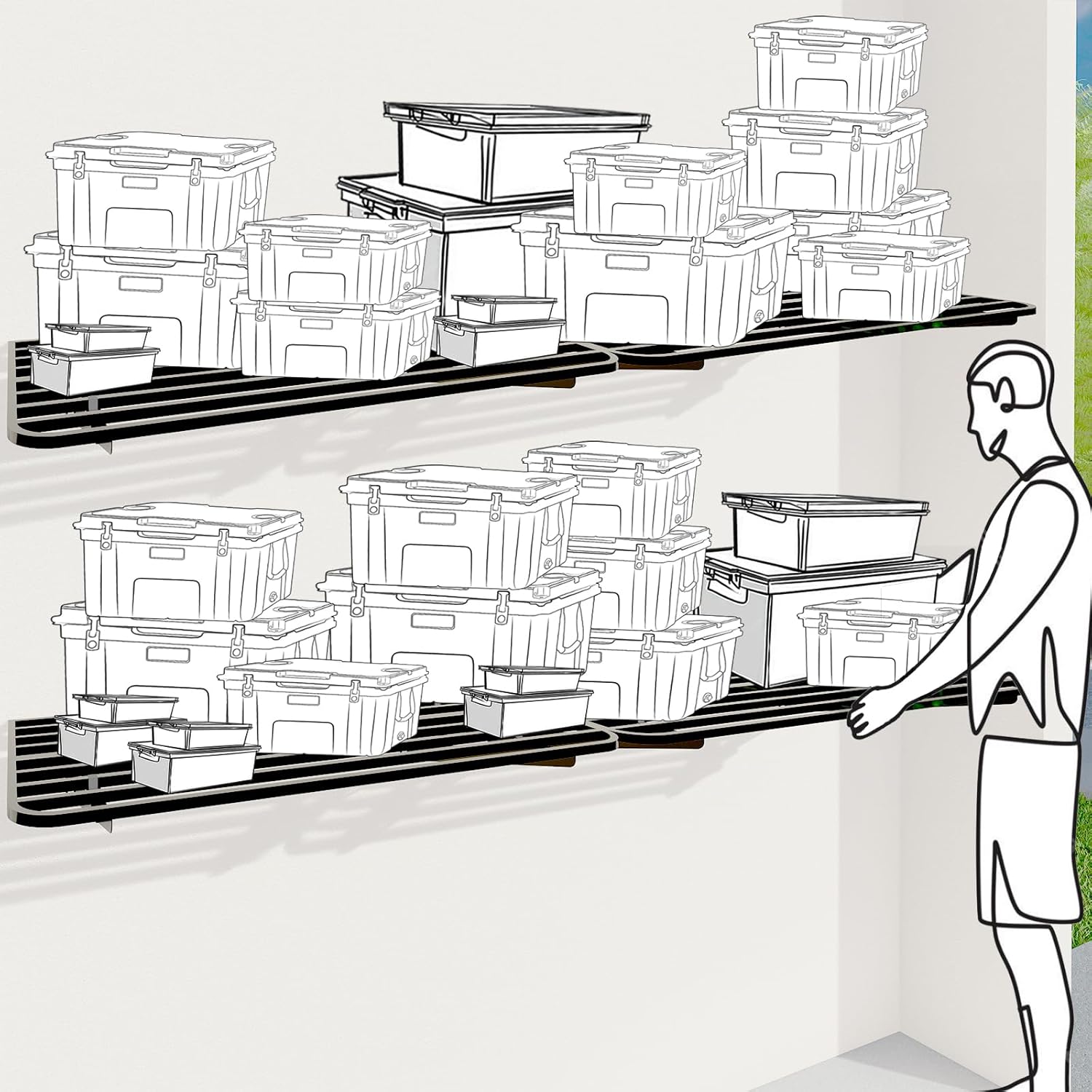 - ăGarage Shelvingă: Includes a 4-pack of wall mounted garage shelves, each measuring 24 x 48'IN, perfect for holding storage bins, boxes, sporting goods, tools, and more. say goodbye to cluttered garage space storage.