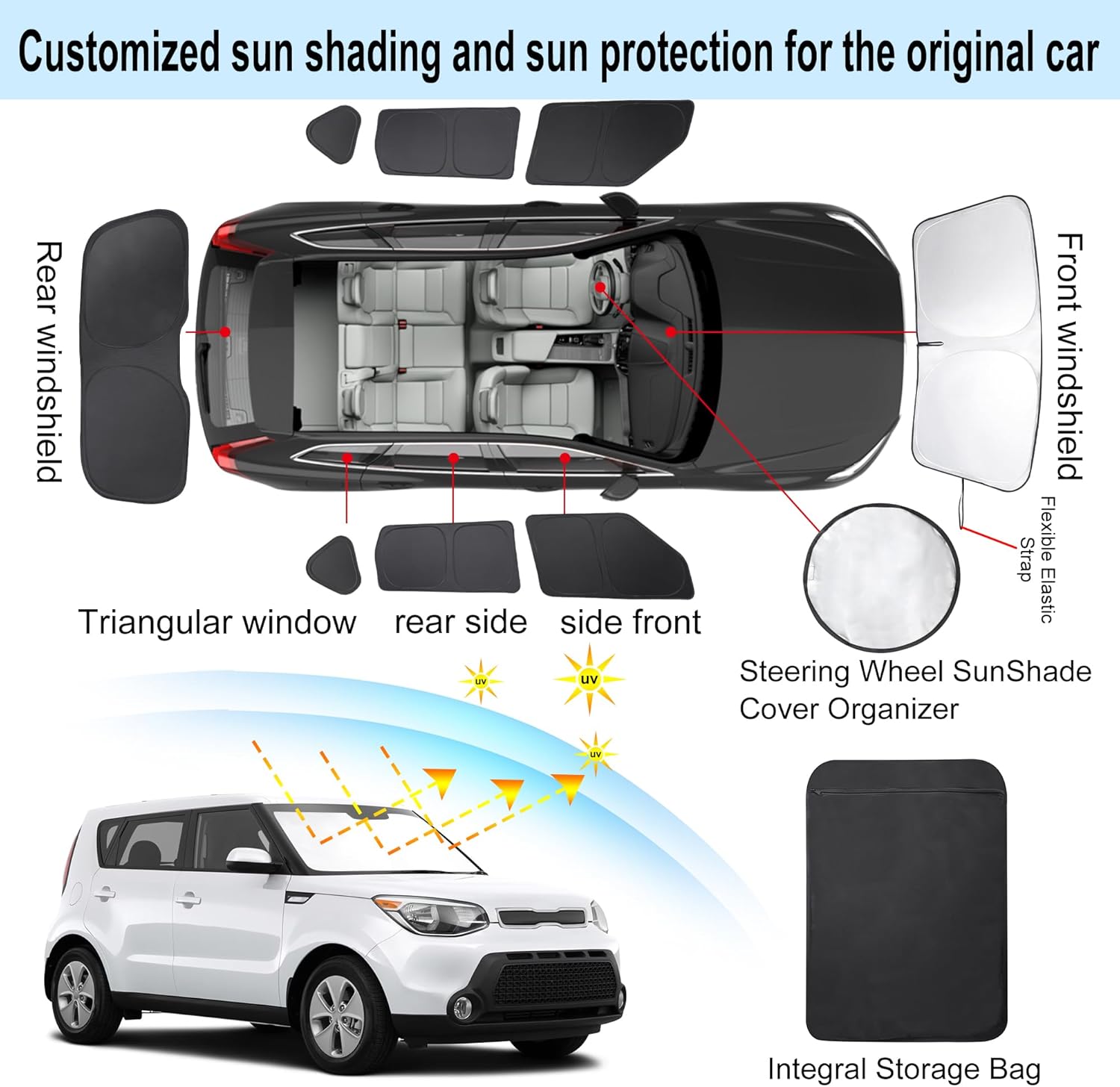 TINGLU Window Shades for Kia Soul 2014-2019 Accessorie Car Side Full Windows Rear Triangular Windshield Sun Shade Sun UV Rays & Privacy Protection for Camping,Napping,and Relaxing 8PCS