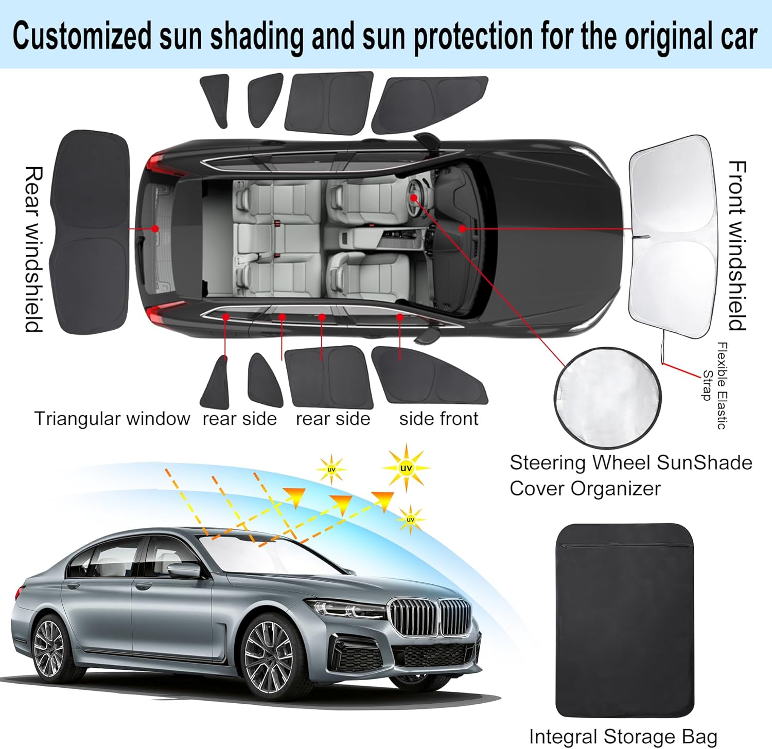 - Customized Design:The sun shade custom fit for BMW X1 F48 2016 2017 2018 2019 2020 2021 2022.Our window shade is according to the car size design,perfectly fit your car and does not need to trim.windshield sun shade solve the problem of light leakage and incompatibility of the old umbrellas.The sunshade designed for BMW X1 F48.