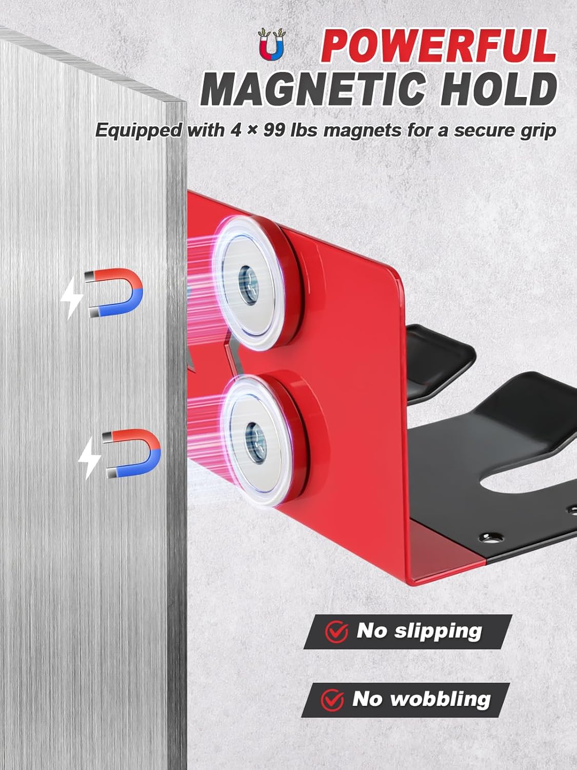 - Heavy-Duty Load Capacity: Made of thick powder-coated steel and supported by strong magnetic force, this holder supports up to 10kg without bending or sliding. A solid choice for auto body shops, garages and daily use