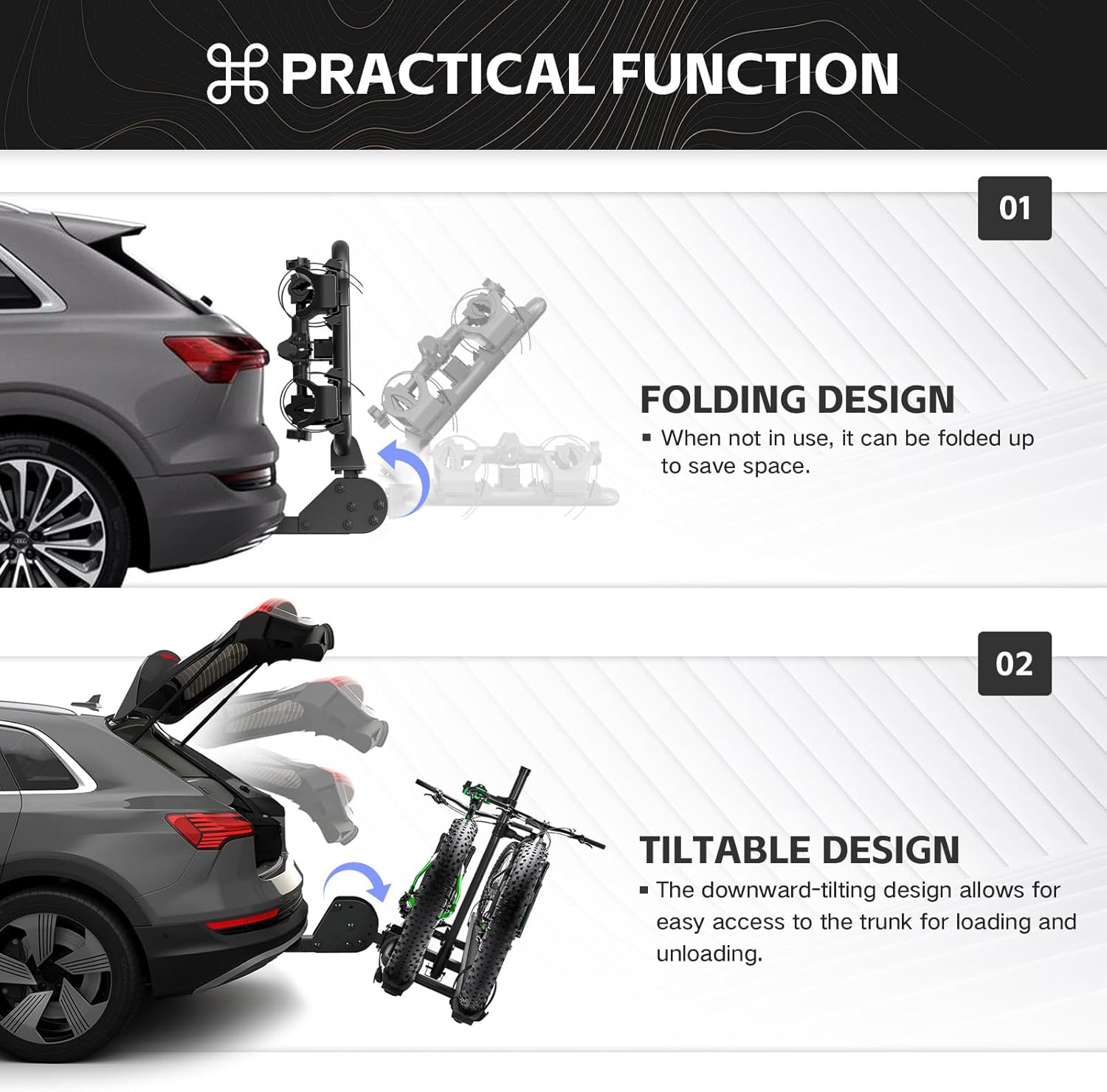- ăFoldable and Tiltable Designă: This YZONA E-Bike Rack features a fold-up design for convenient storage when not in use, and it can be easily tilted downward for access to the trunk, facilitating the loading and unloading of cargo.