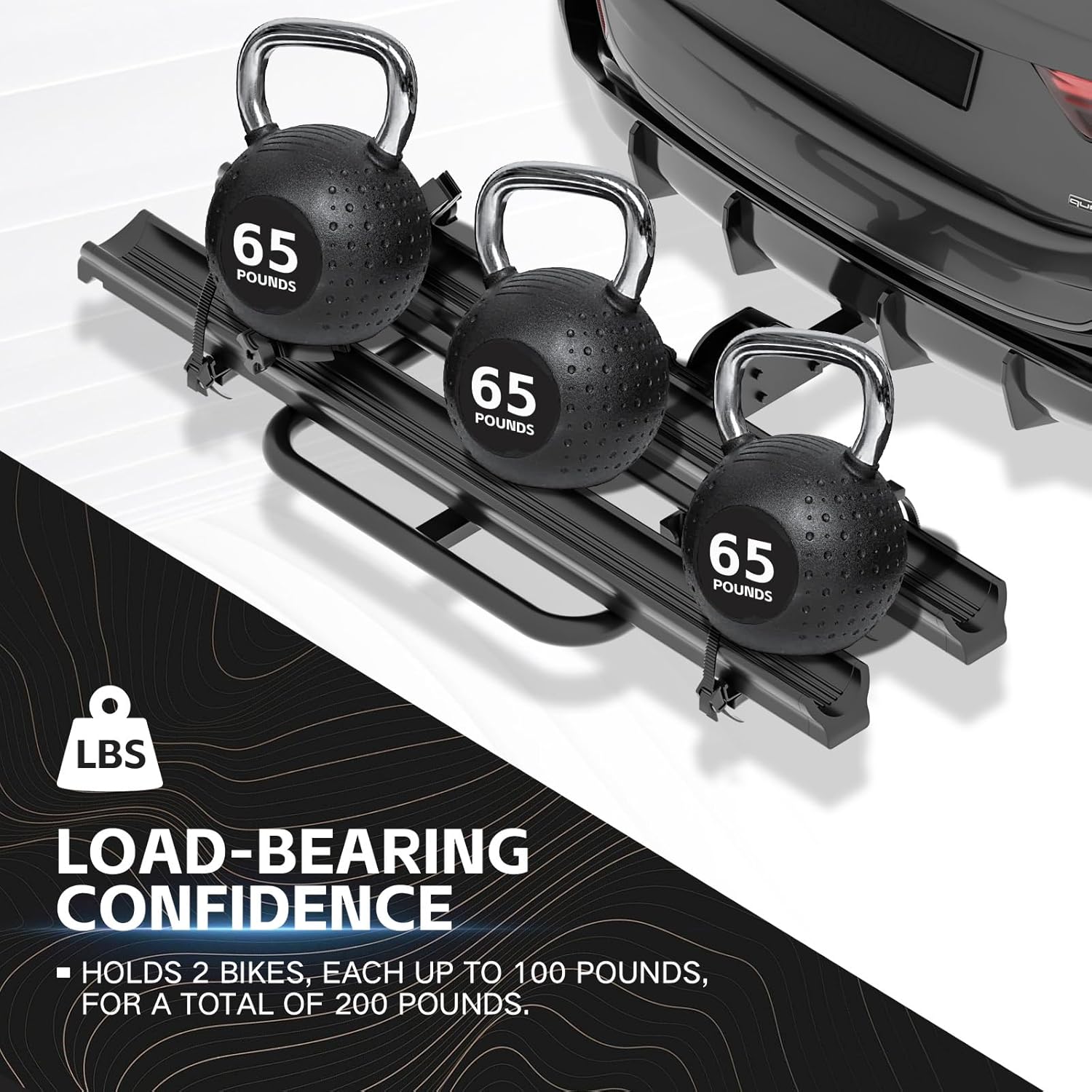 - ăDesigned for Heavy-Duty Load Capacityă: This YZONA electric bike rack is constructed from heavy-duty steel and aluminum with a corrosion-resistant electronic coating. It's designed to hold 2 bikes, each weighing up to 100 pounds, for a total capacity of 200 pounds.
