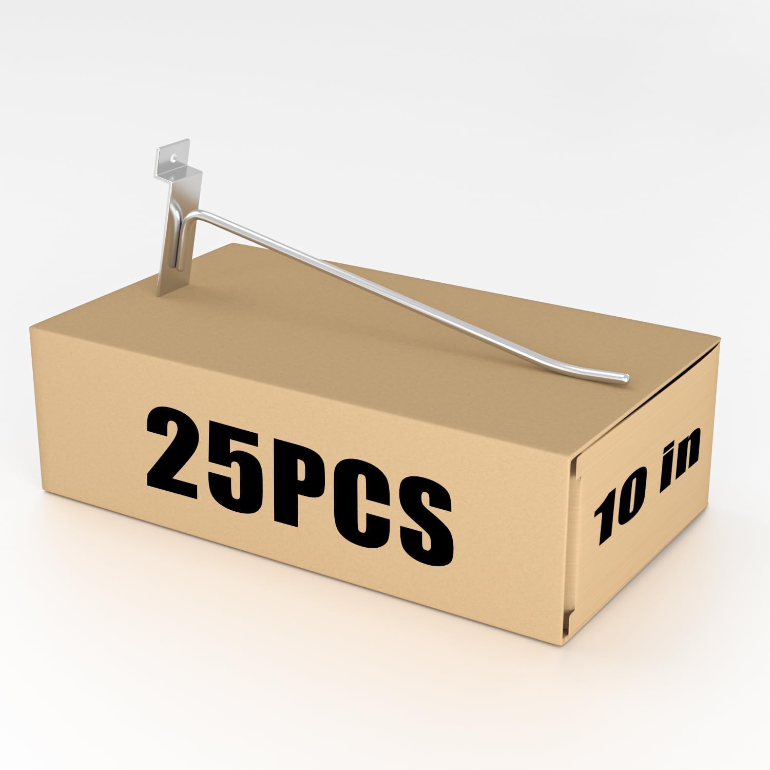 25 PK Silver 10 inch Wall Mounted Slatwall Hooks – Heavy-Duty Storage & Organization Solution