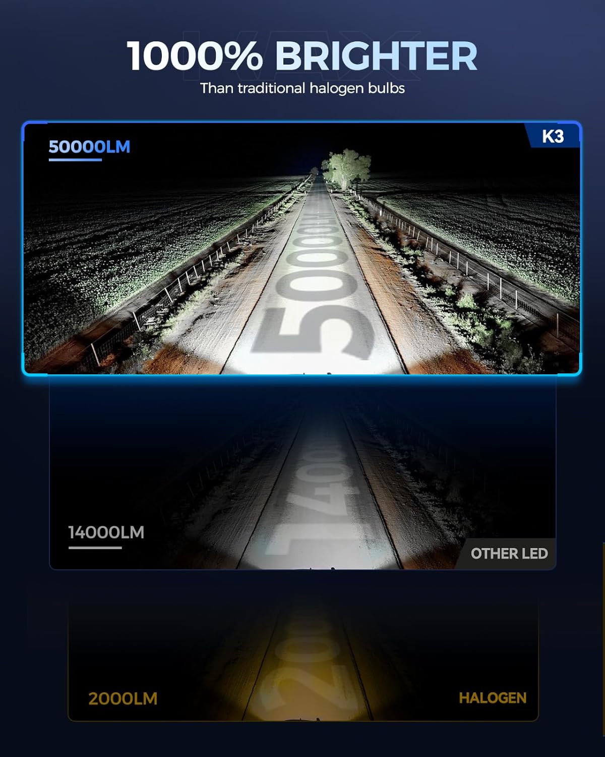 KAX 2025 10X Brightener 9005 Led Bulb for Car Owners, 50000Lm HB3 for Drivers at Night, LED Bulb During Bad Weather, 1:1 Real Size, 100000 Hours Lifespan, 99% Fit Your Vehicles, Plug & Play, 2 Pack