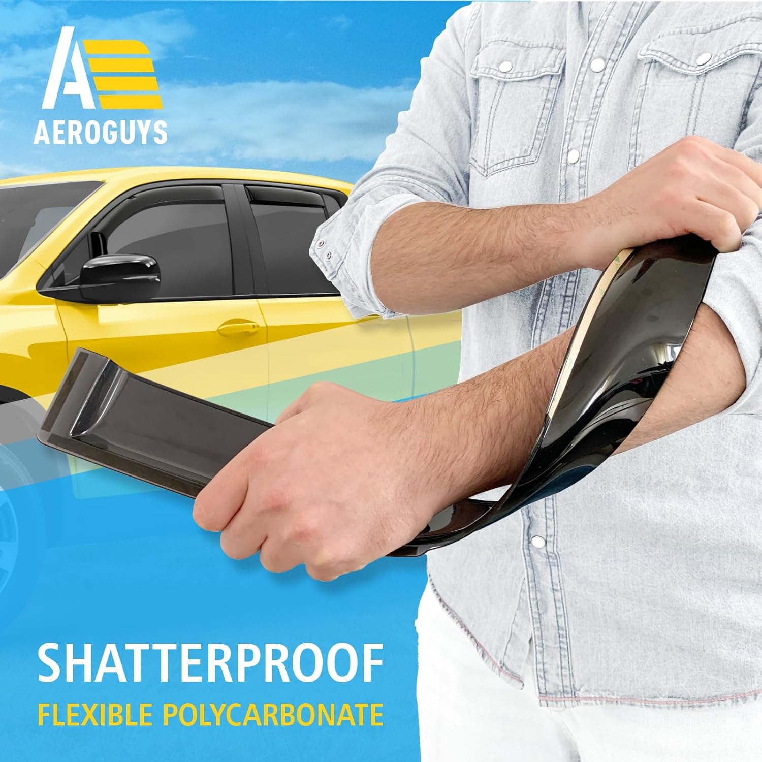 - Incredibly Durable AEROGUYS Auto Window Deflectors β They are made with strong and tough polycarbonate which is clear and scratch-resistant. They also provide UV protection making your ride more comfortable under all weather conditions.