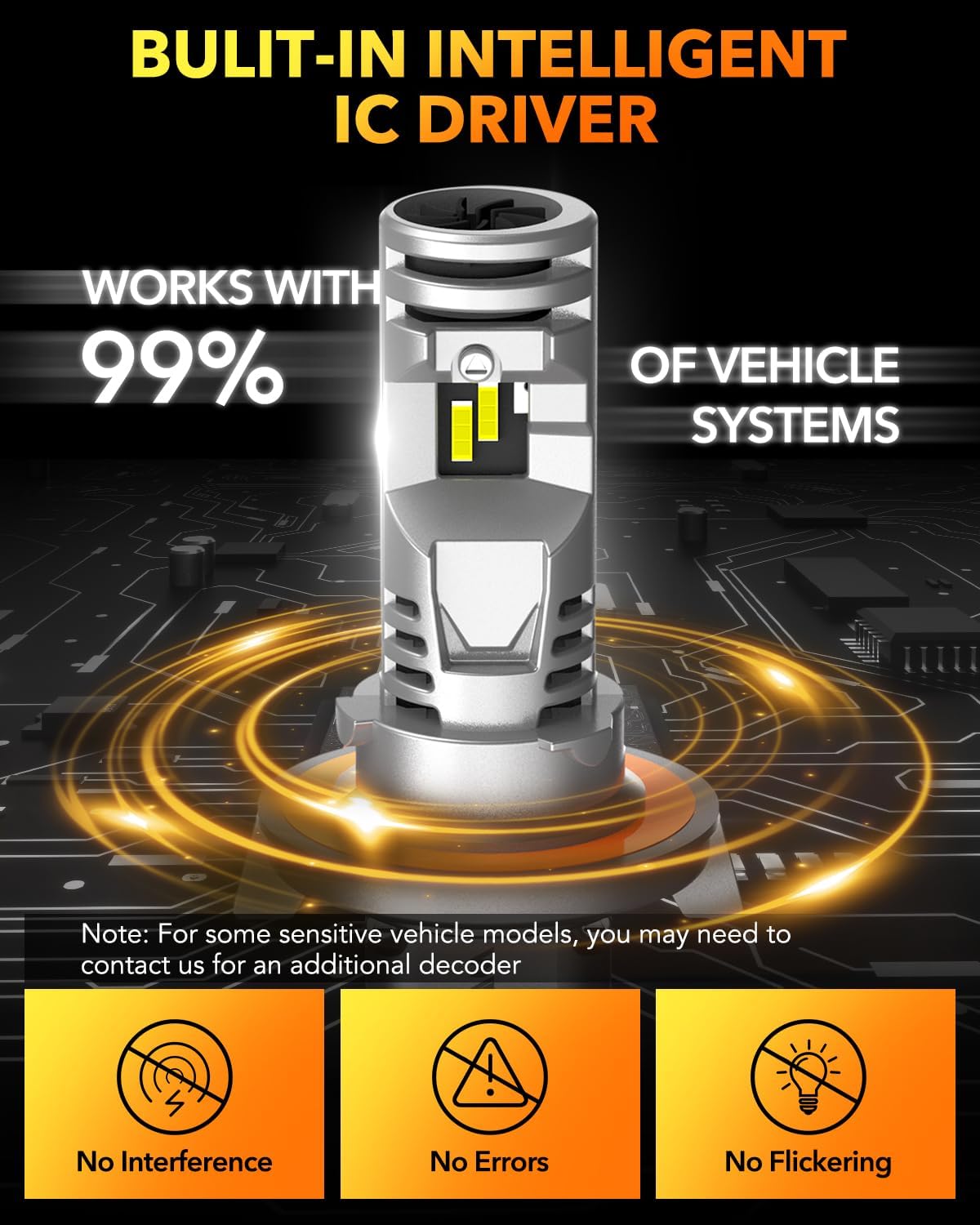 - Wide Vehicle Compatibility – The built-in intelligent IC driver ensures compatibility with 99% of vehicles. For rare sensitive models, a CANBUS decoder may be required
