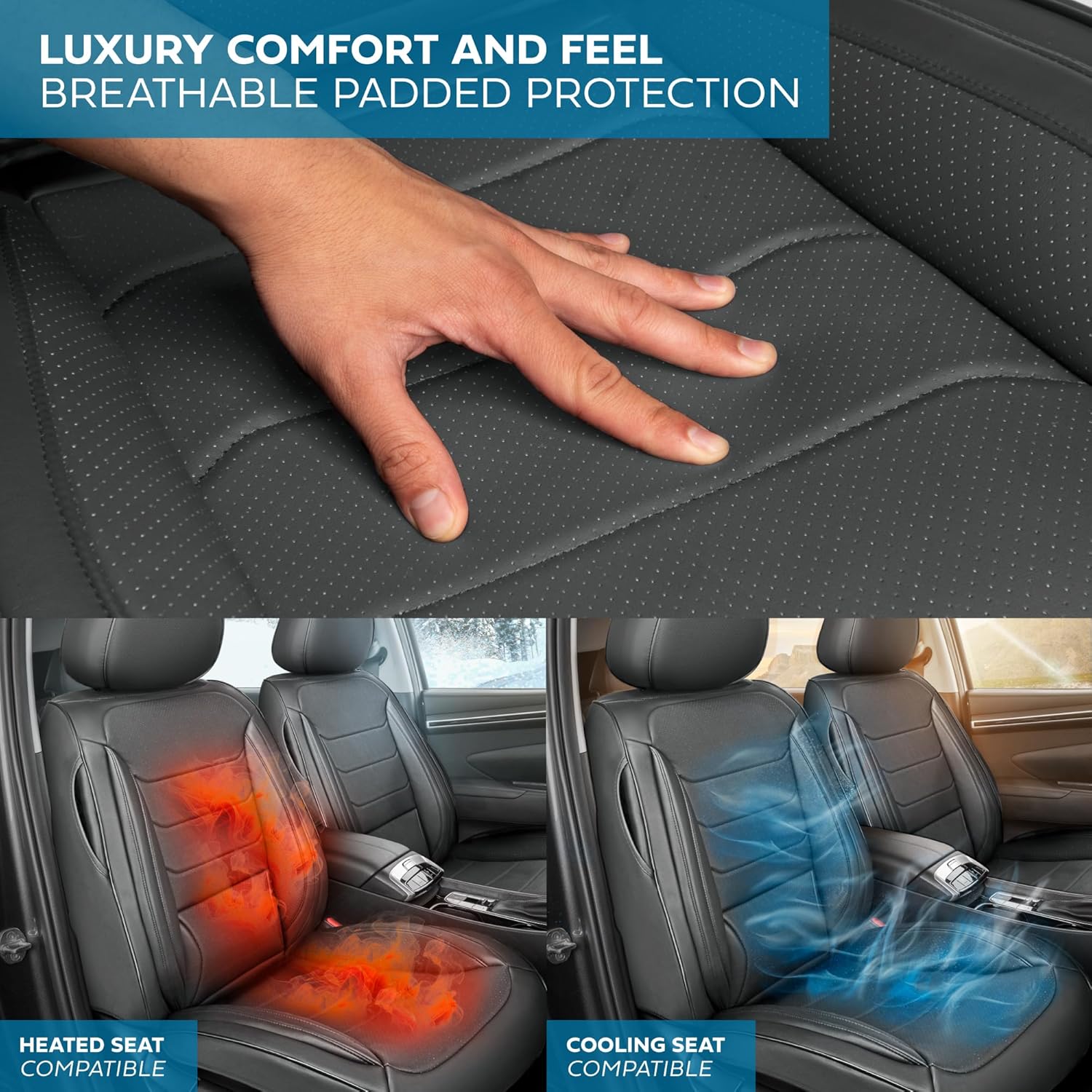 - ULTIMATE PROTECTION: MotorBox faux leather car seat covers offer ultimate protection against spills, stains, dirt, and wear. Designed to shield your seats from daily damage, these covers help maintain the original condition of your car’s interior, ensuring durability and extending the lifespan of your vehicle’s seats. Not just for cars, these are leather seat covers for trucks & SUVs too!