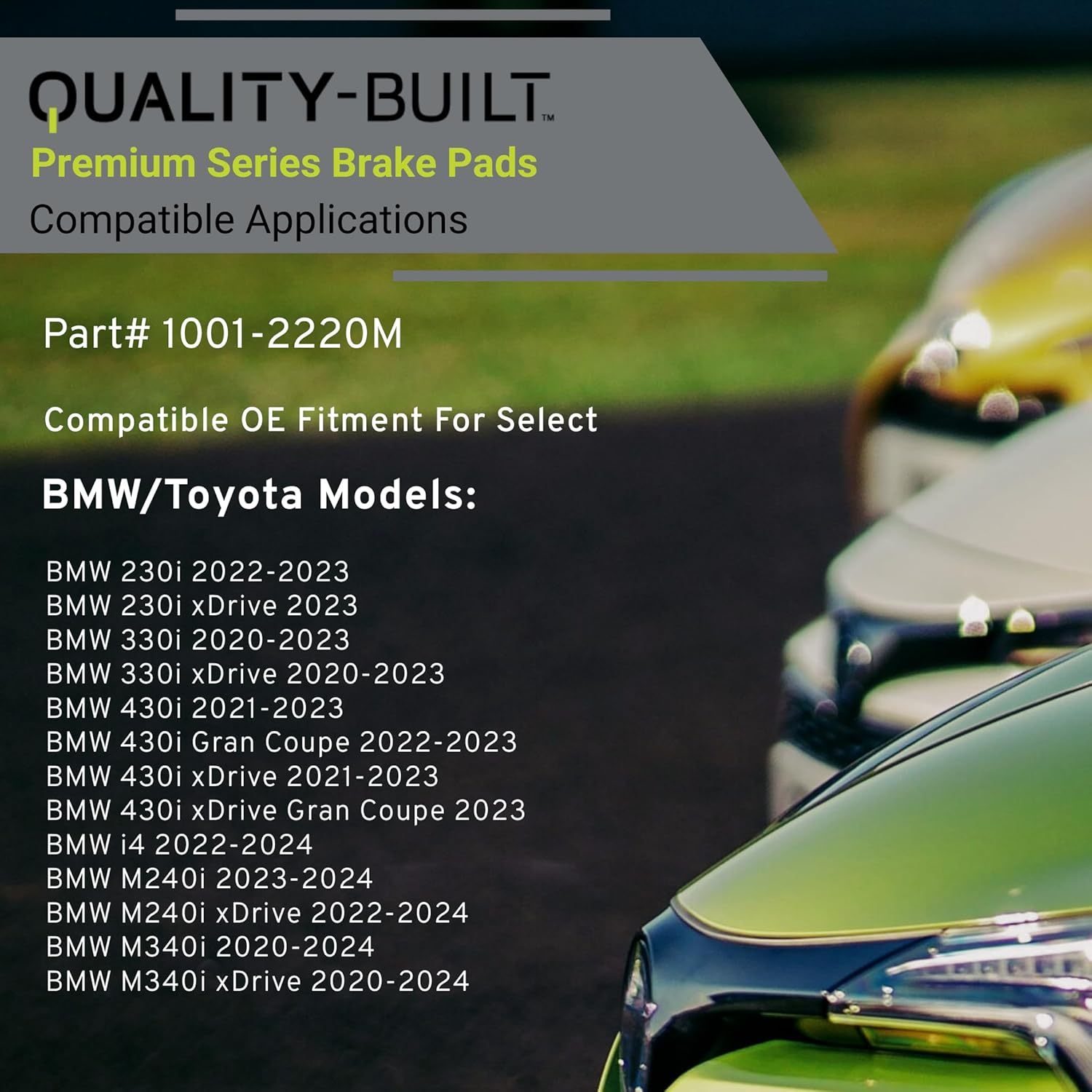 Premium Semi-Metallic Rear Brake Pads (1001-2220M) Compatible with 2019-2024 BMW/Toyota (230i/330i/430i/430i Gran Coupe/GR Supra/i4/M240i/M340i/M440i/M440i Gran Coupe/Z4 & More)