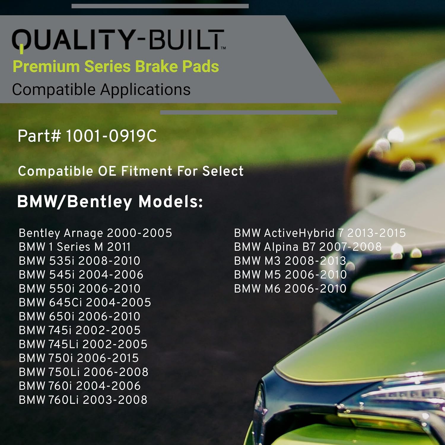 Premium Ceramic Rear Brake Pads (1001-0919C) Compatible with 2000-2015 Bentley/BMW (1 Series M/535i/545i/550i/645Ci/650i/745i/745Li/750i/750Li/760i/M3/M5/M6 & More)