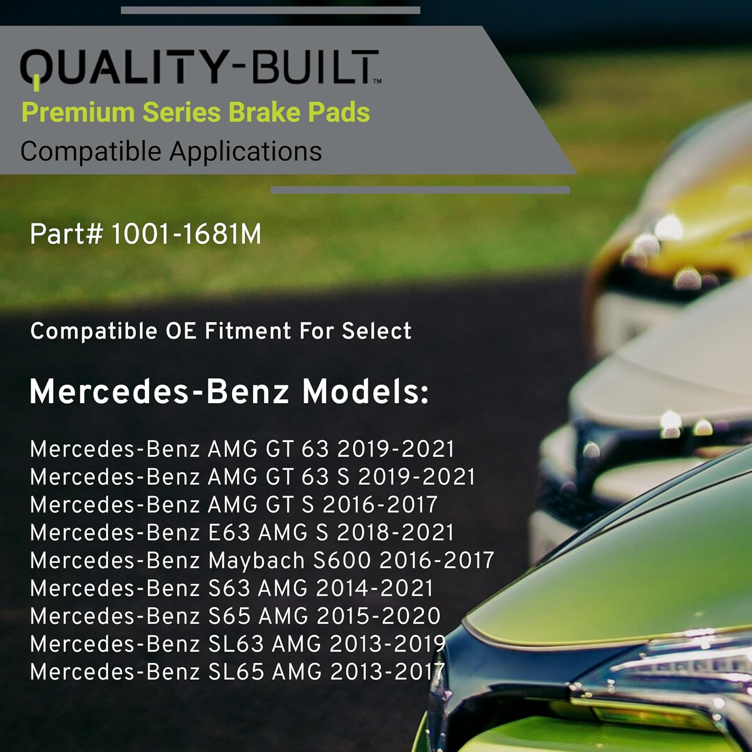 - VEHICLE FITMENT LIST: Mercedes-Benz AMG GT 63 2021-2019, AMG GT 63 S 2021-2019, AMG GT S 2017-2016, E63 AMG S 2021-2018, Maybach S600 2017-2016, S63 AMG 2021-2014, S65 AMG 2020-2015, SL63 AMG 2019-2013, SL65 AMG 2017-2013 (PART#1001-1681M)