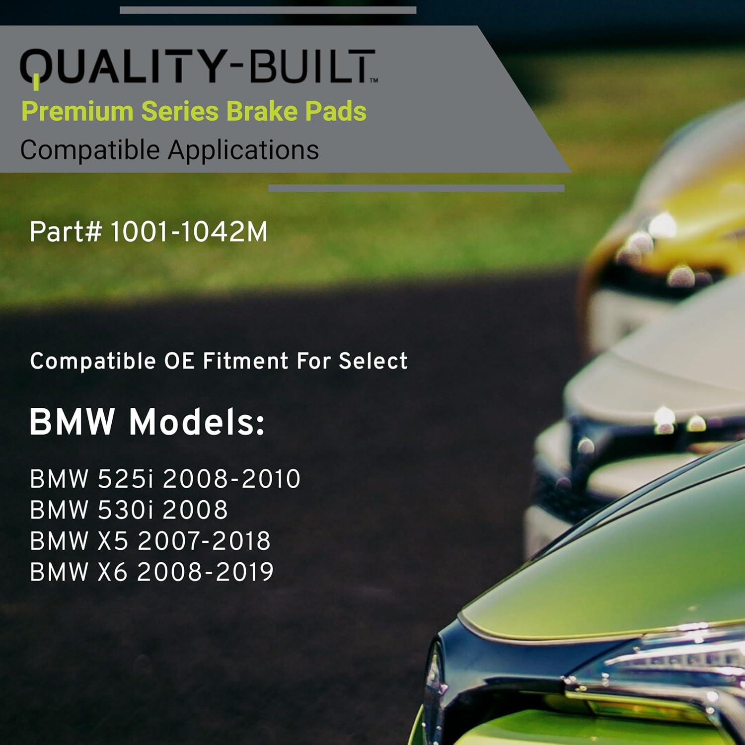 Premium Semi-Metallic Rear Brake Pads (1001-1042M) Replacement for BMW 525i 2010-2008, 530i 2008, X5 2018-2007, X6 2019-2008