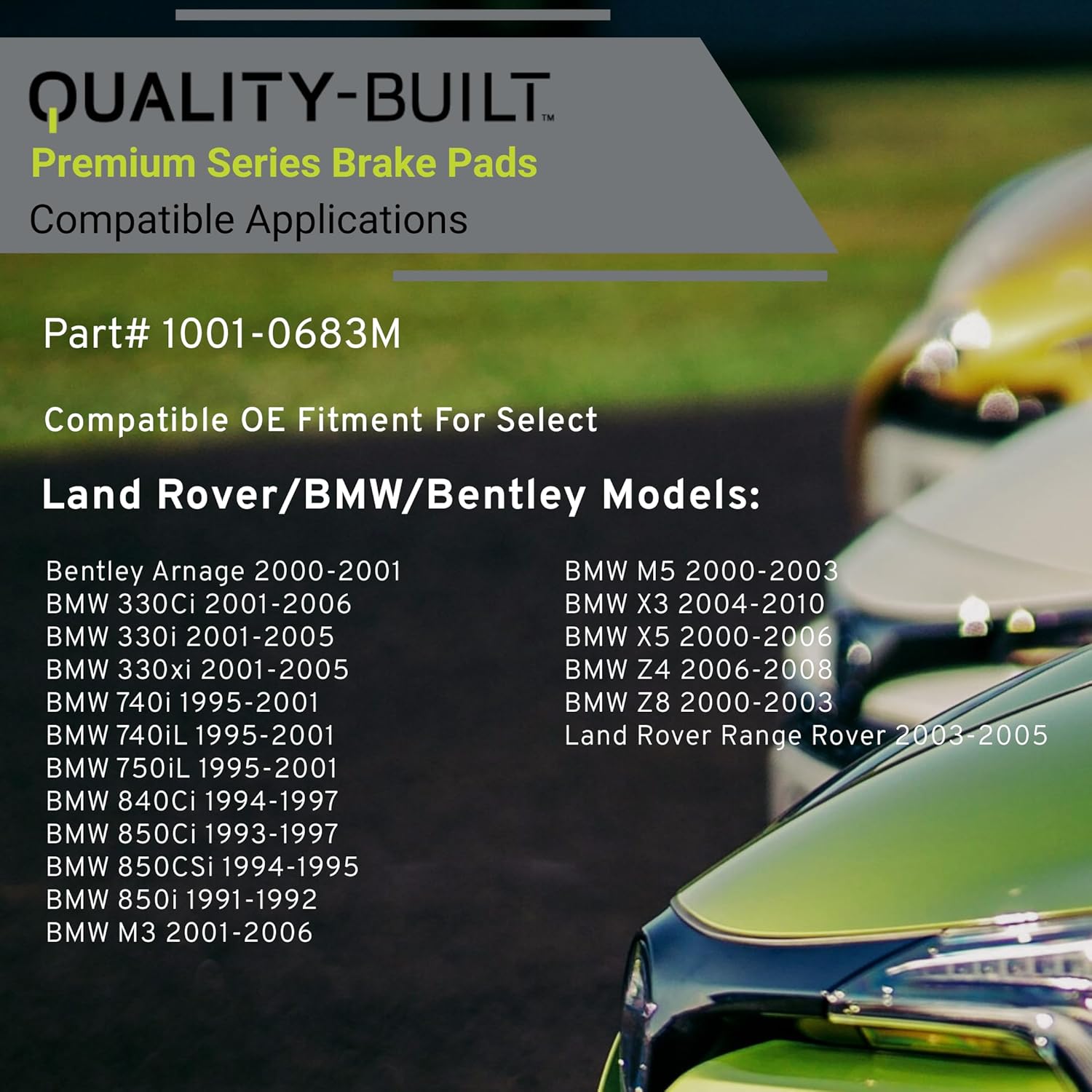Premium Semi-Metallic Rear Brake Pads (1001-0683M) Compatible with 1991-2010 Bentley/BMW/Land Rover (330Ci/330i/330xi/740i/740iL/750iL/M3/M5/Range Rover/X3/X5/Z4/Z8 & More)
