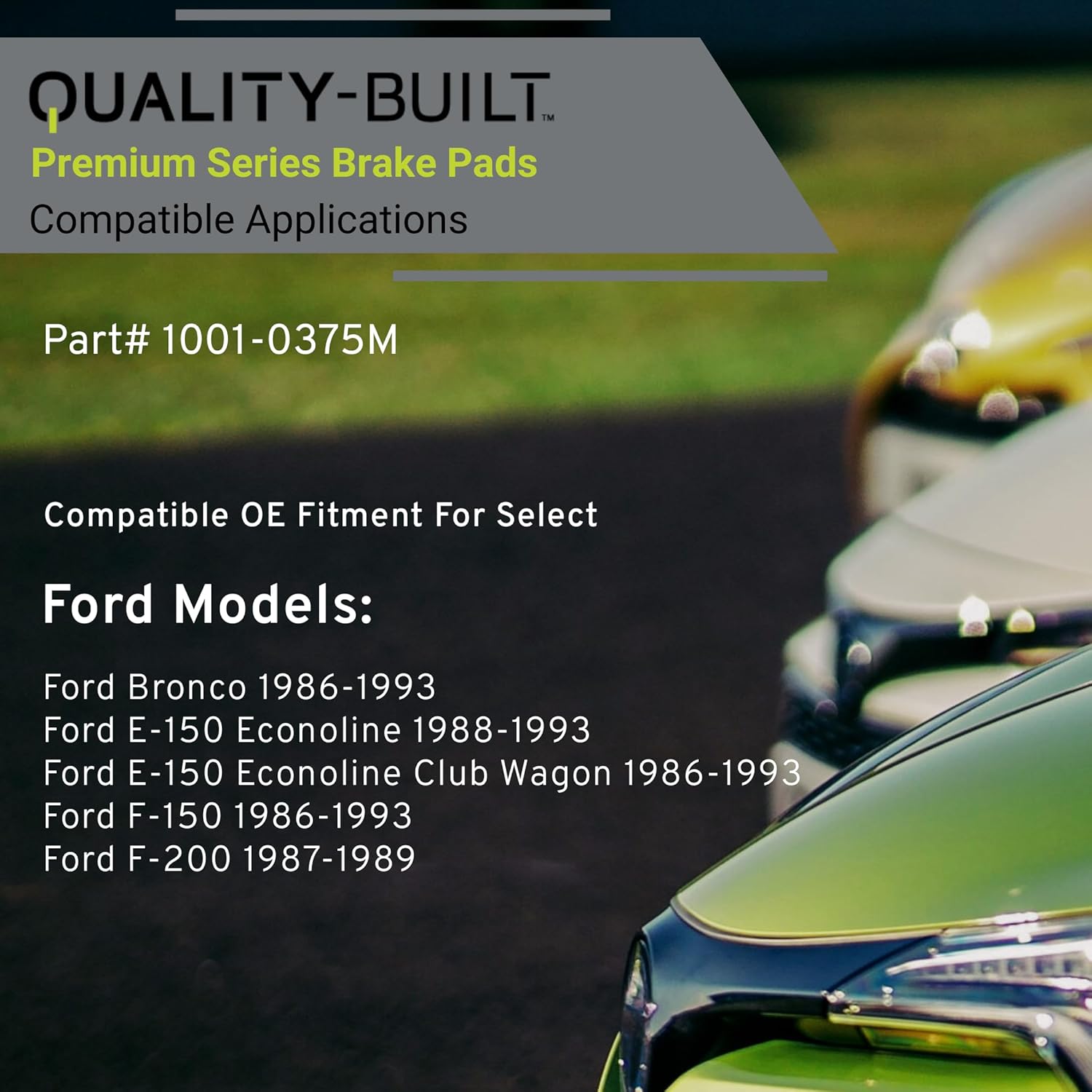 Premium Semi-Metallic Front Brake Pads (1001-0375M) Compatible with 1986-1993 Ford (Bronco/E-150 Econoline/E-150 Econoline Club Wagon/F-150/F-200)
