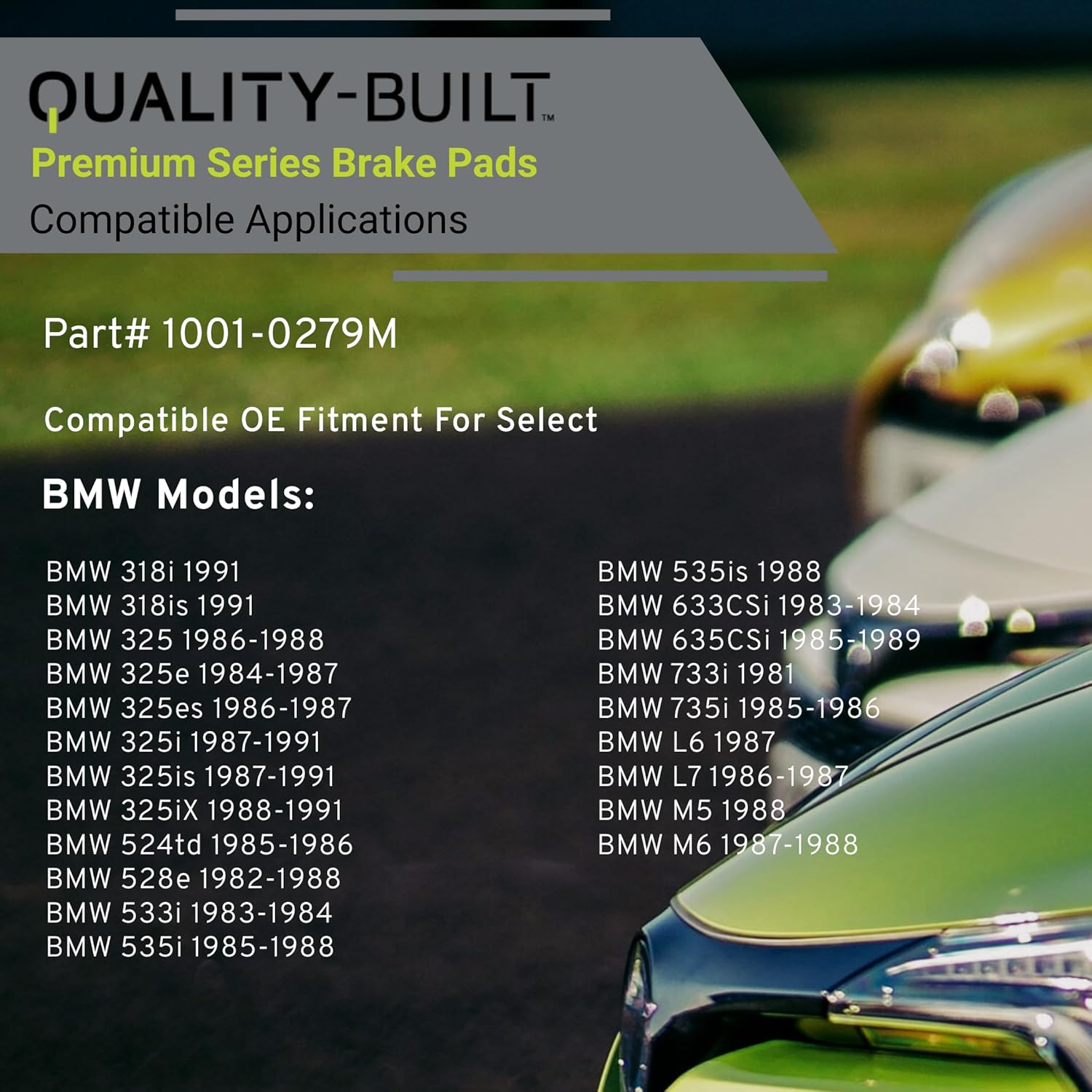Premium Semi-Metallic Rear Brake Pads (1001-0279M) Compatible with 1981-1991 BMW (318i/318is/325i/325is/325iX/524td/528e/533i/535i/535is/633CSi/635CSi/733i/735i/L6/L7/M5/M6 & More)