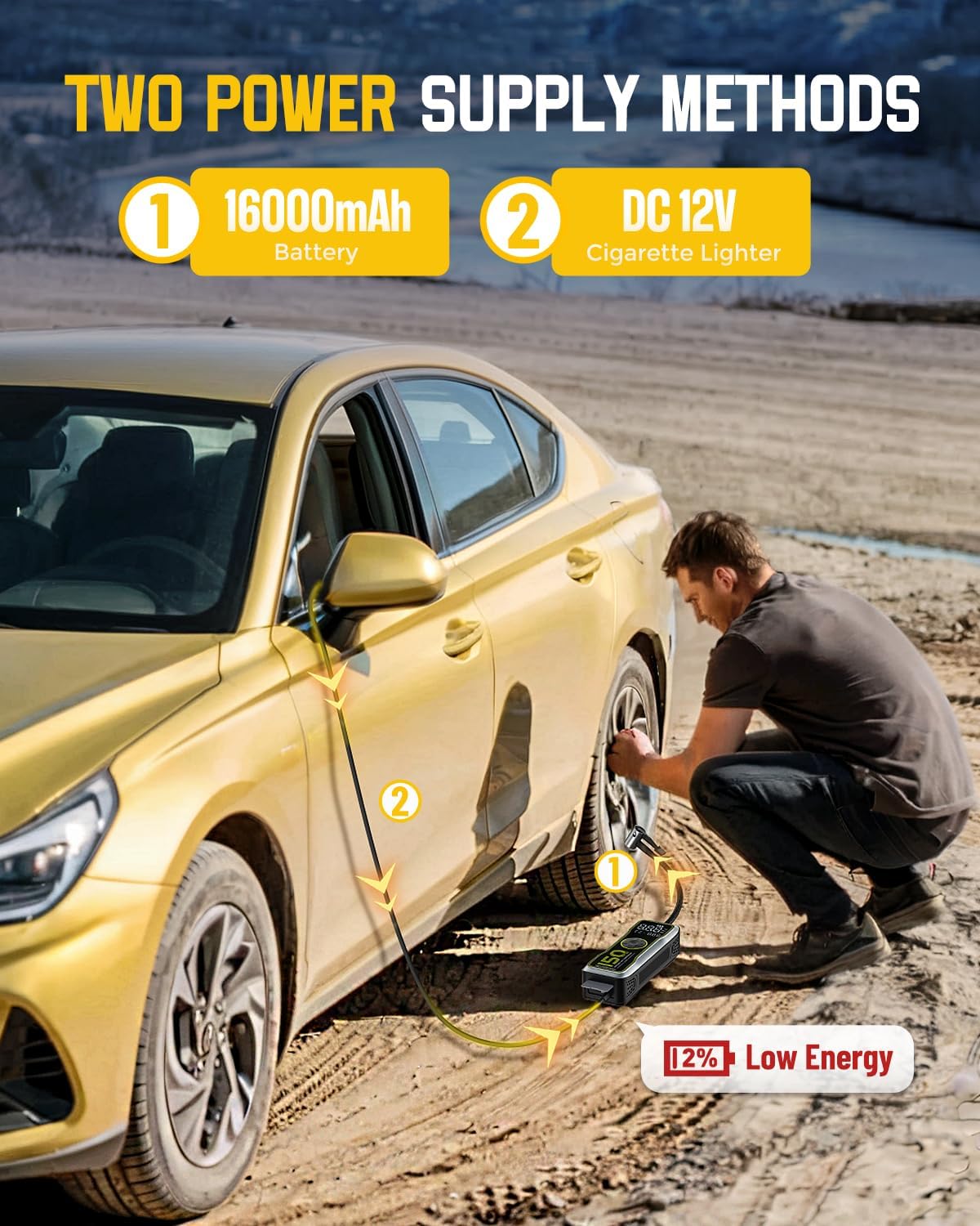 - Multi-scene&Multi-function:NEVERLAND air pump for car tires has 5 modes for car motorcycle balls bike pump and other inflatable products. Provides two power supply methods:DC 12V Cigarette Lighter and battery supply. When it out of power, inflated directly using vehicle power. Essential car accessories for all kinds of emergencies,no worries for outdoor emergency power supply