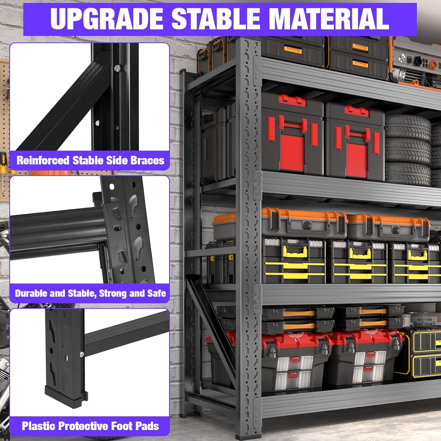 - ăHeavy-duty Garage Shelves with Big CapacityăThese wire garage shelving are made with highest quality industrial grade metal, thickened columns and beams ensure maximum stability in these garage shelving, the 4-tier heavy-duty wire shelving rack with up to 6000 pounds of weight capacity is what you really need!