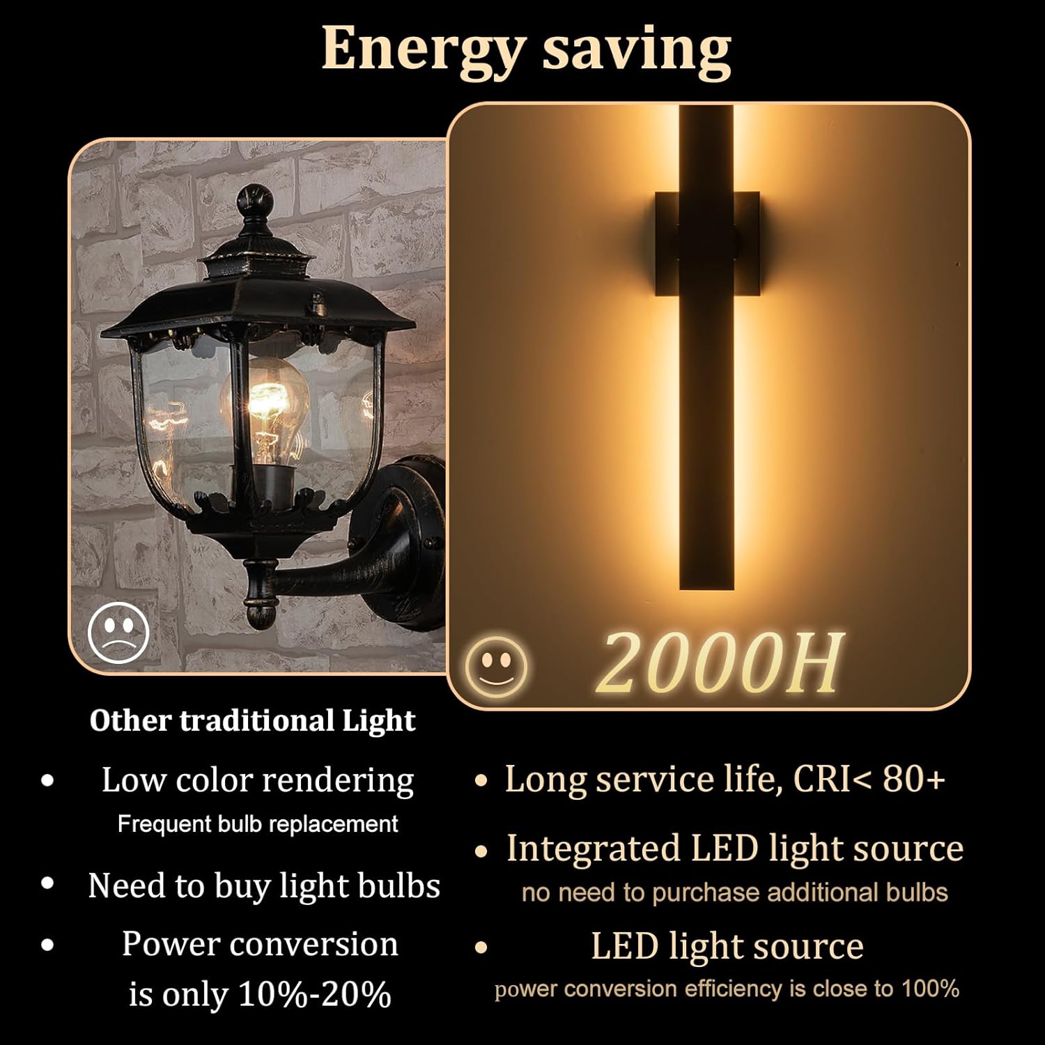 - MODERN MINIMALIST PORCH LIGHTS OUTDOOR DESIGN: Simple flat straight line lamp body design, integrated LED 12W 3000K light source, stable and efficient LED light source saves up to 80% more power than traditional bulbs, The outdoor light fixture provide stylish illumination and create a warm ambiance. (Not included remote control)