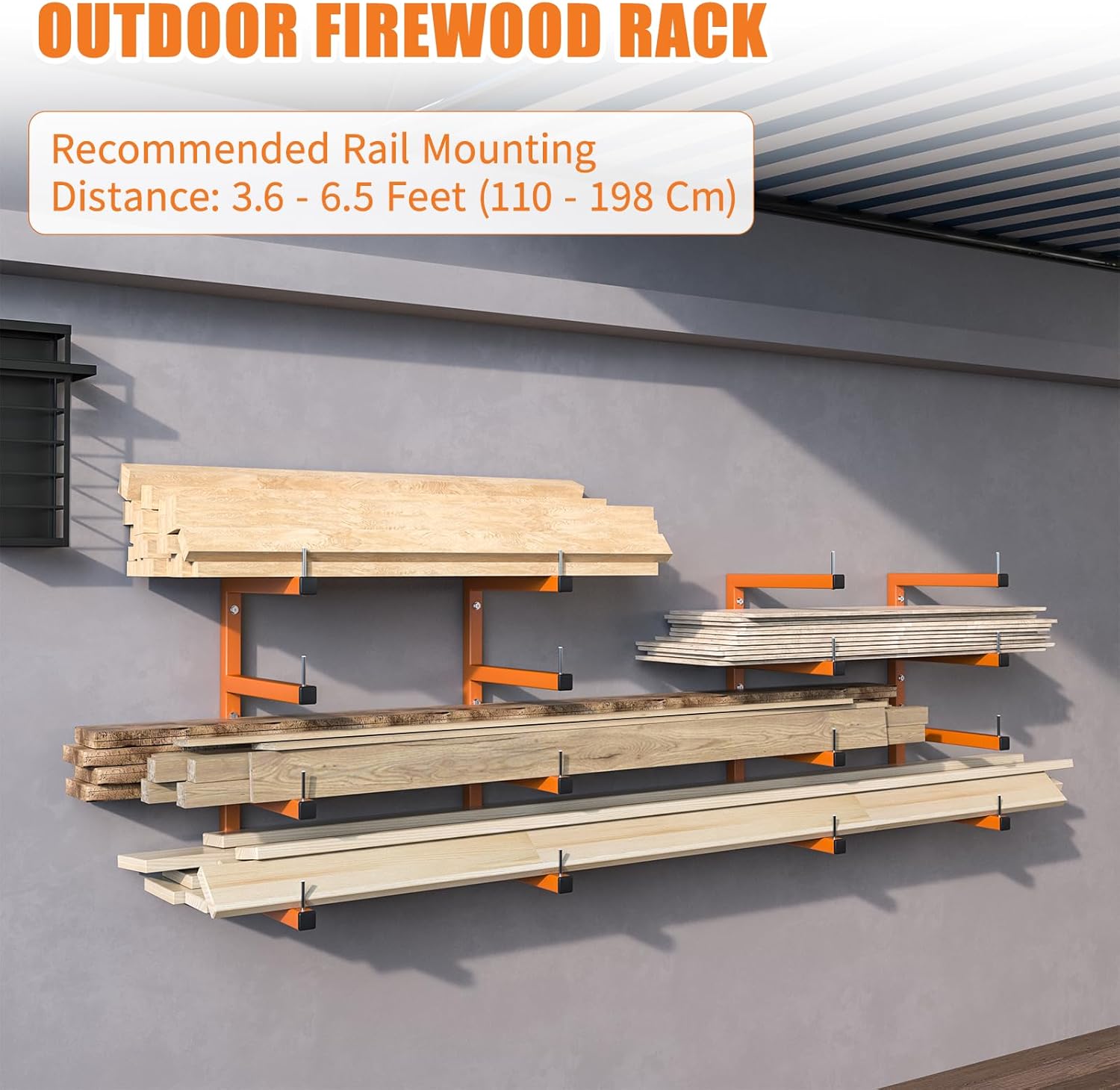 - DURABLE CONSTRUCTION: Garage Lumber Storage Rack is made of 1.3mm high-quality thick steel pipe, which is not easy to deform and bend, and its safe load-bearing capacity is beyond doubt. Industrial-grade Orange metal brackets ensure long-lasting performance and reliable support for heavy materials. Not only beautiful, but also waterproof and not easy to rust.